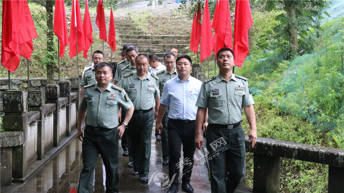 秀山網訊 6月29日下午,縣人武部組織全體干部職工與巡視巡查工作組冒雨前往隘口鎮壩芒村,在倒馬坎戰斗紀念碑下舉行“銘記紅軍史,重走長征路”紀念革命烈士的活動。縣委常委、縣人武部長鄧應軍參加。