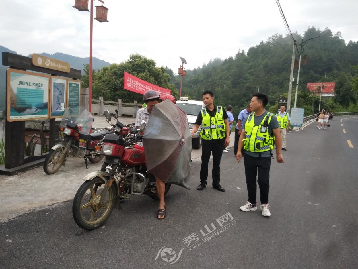 秀山網訊 為及時消除道路交通安全隱患,有效預防和減少交通事故的發生。7月9日,大溪鄉主要領導帶隊,組織應急辦、平安辦嚴查嚴治摩托車、電動車加裝雨棚違法行為專項整治行動。