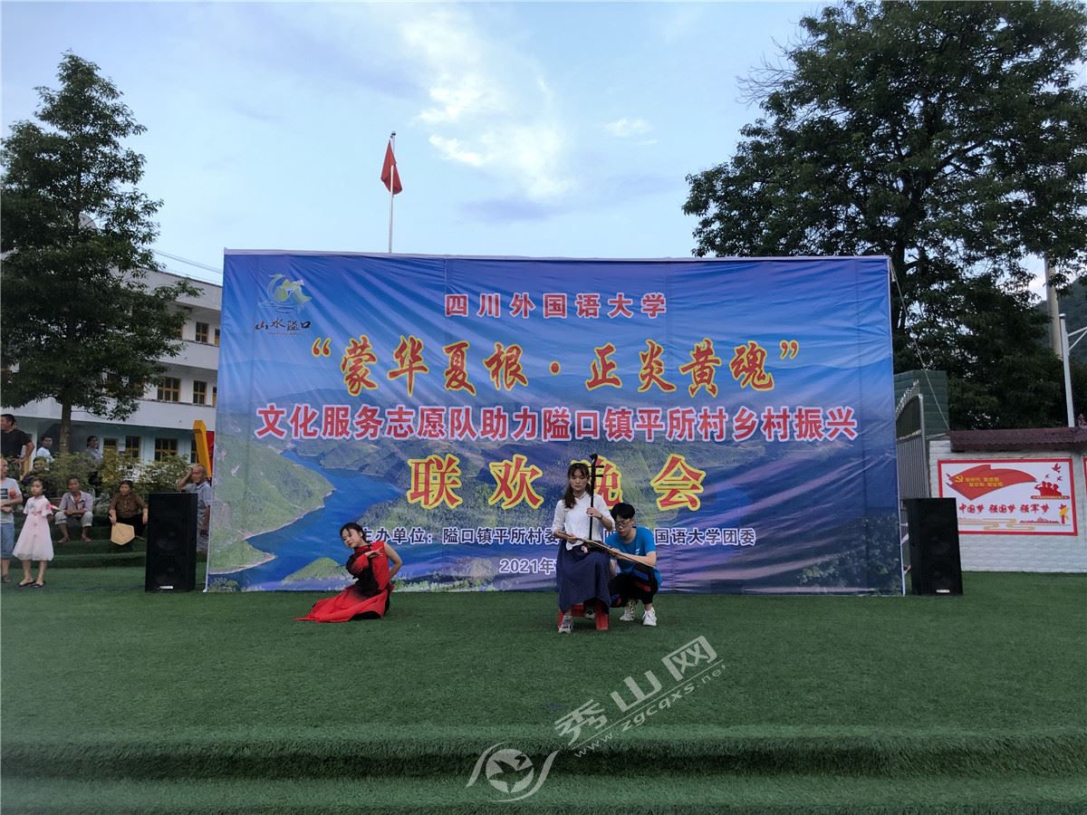 秀山網訊 7月21日晚,四川外國語大學文化志愿服務隊在隘口鎮平所村舉辦聯歡晚會,通過聯歡總結鞏固本次暑期“三下鄉”社會實踐成果。