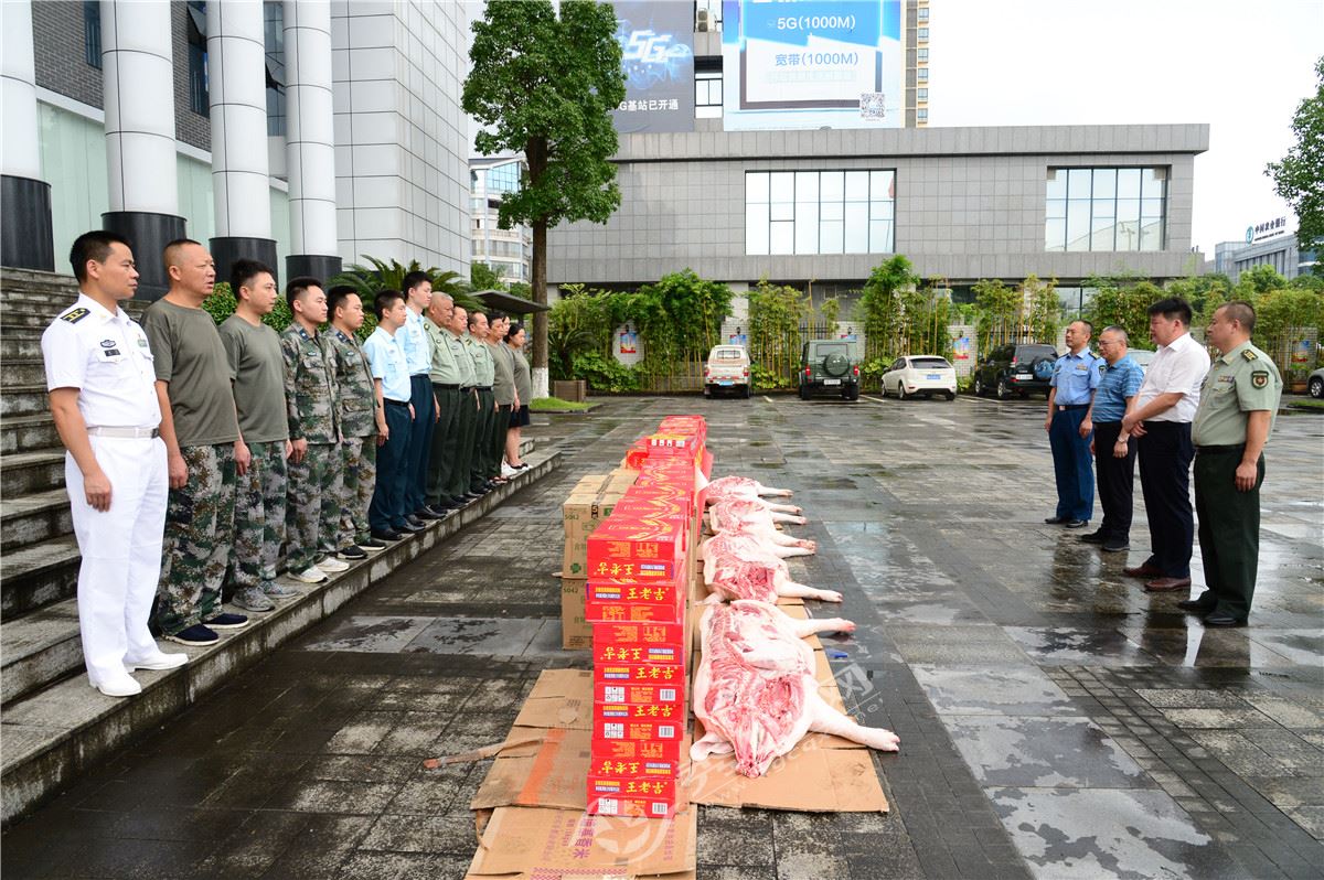 在縣人武部,向業(yè)順代表縣委、縣人大常委會(huì)、縣政府、縣政協(xié)向官兵們致以節(jié)日的問(wèn)候和誠(chéng)摯的祝福,并給大家送去豬肉、大米、食用油、飲料等慰問(wèn)品。