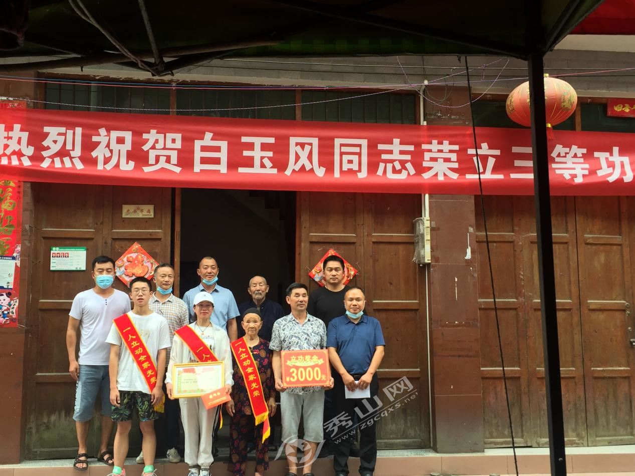 秀山網訊 8月6日,縣退役軍人事務局副局長龔平一行人前往峨溶鎮,為在部隊榮立三等功的現役軍人白玉風家屬送上喜報、慰問金和親切的問候。