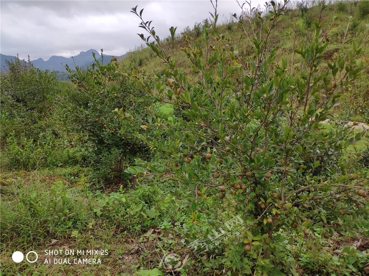 今年是種植油茶的第5年,路邊的樹苗早已掛果,金果墜枝,筆者大致在一顆油茶樹上數(shù)了一下,一顆油茶樹上結(jié)了上百顆油茶。