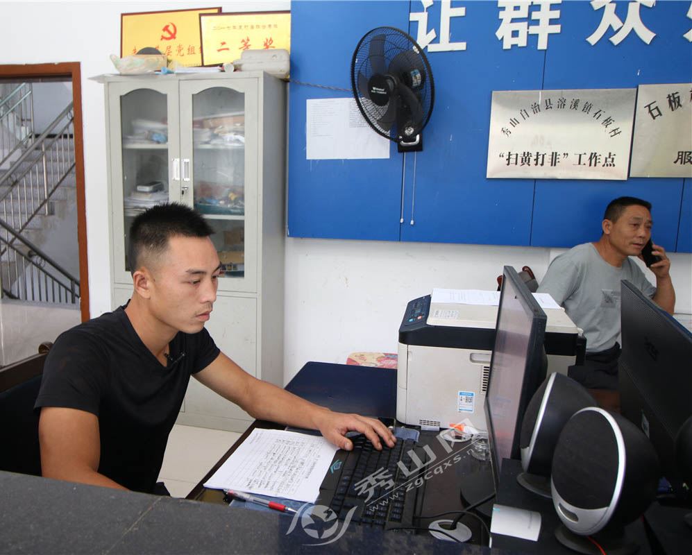 因為從小在山里長大,劉飛深知農村生活的艱辛,他也一直想為家鄉發展出一份力。2015年,當劉飛脫下軍裝那一刻,就毅然決然選擇回到家鄉發展,用實際行動來書寫退伍不褪色的軍人本色。當年,經考試劉飛成為了石板村的本土人才。剛回到村里,劉飛覺得在自家門口“管事”很容易,但很快他就發現,其實村里的工作并不輕松。劉飛坦言:“畢竟我還年輕,在村里面面對的是老百姓,這個工作很難做”。