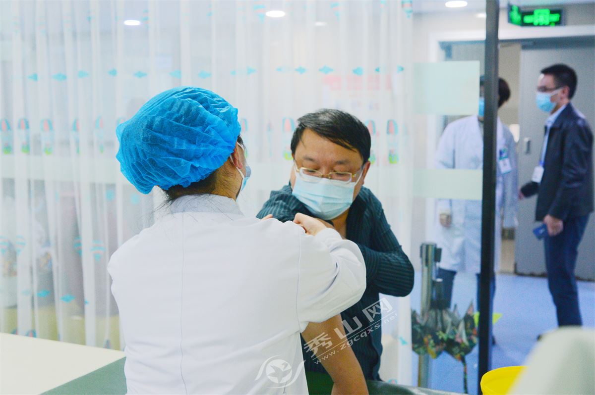 接種現場,向業順、馬文森一行按照防疫要求,主動接受醫護人員相關詢問,在認真了解疫苗接種注意事項后,依次接種了新冠病毒疫苗。