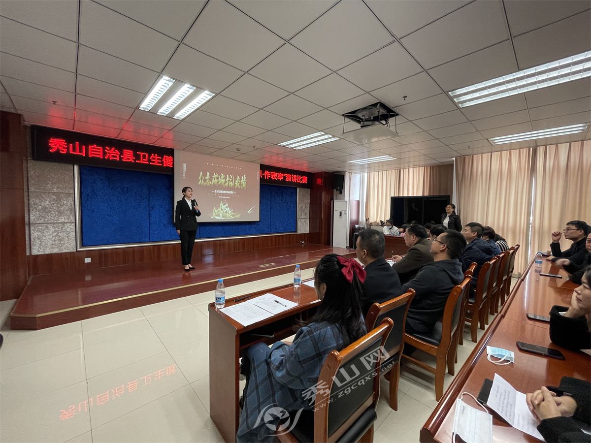 秀山網(wǎng)訊 為進一步貫徹落實習近平總書記在黨史學習教育動員大會上的重要講話和習近平總書記“七一”重要講話精神,推動黨史學習教育走深走實,11月18日下午,全縣衛(wèi)生健康系統(tǒng)開展“學黨史·感黨恩·作表率”演講比賽。來自全縣各鄉(xiāng)鎮(zhèn)衛(wèi)生院、街道社區(qū)衛(wèi)生服務中心,縣直各醫(yī)療衛(wèi)生健康單位共16名參賽選手參加比賽。