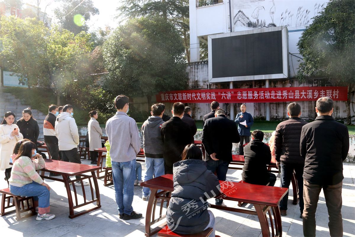 秀山網訊 11月24日,由重慶市文藝志愿者協會、重慶市書法家協會聯合舉辦的重慶市文聯新時代文明實踐“六講”志愿服務活動走進大溪鄉豐聯村。