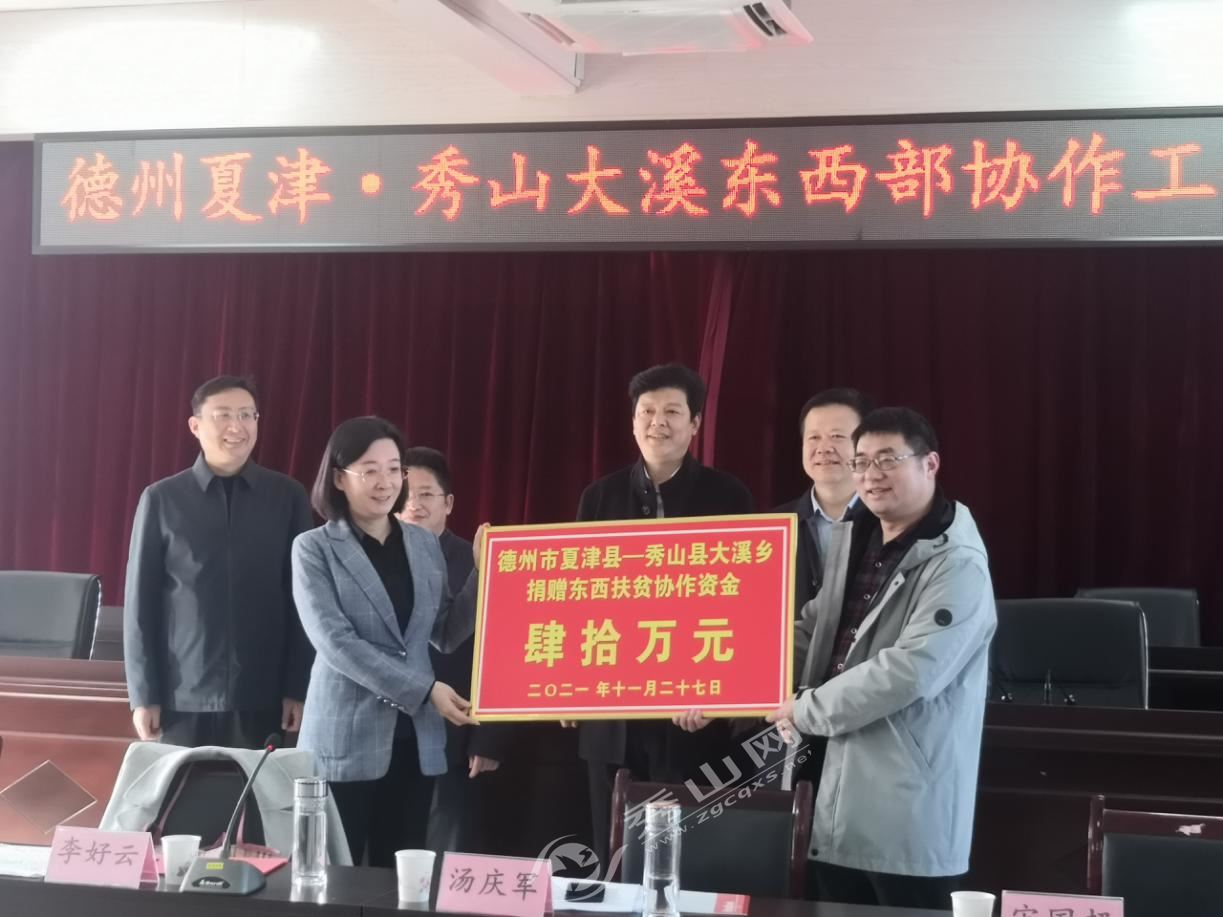 會上,夏津縣與大溪鄉(xiāng)簽訂了《東西互動、協(xié)同發(fā)展框架協(xié)議》,夏津縣香趙莊鎮(zhèn)香趙莊村與大溪鄉(xiāng)力大村簽訂了《東西部協(xié)作村村結(jié)對共建協(xié)議書》,并向大溪鄉(xiāng)捐贈了財政援助資金40萬元,慰問了大溪鄉(xiāng)2戶困難群眾,發(fā)放慰問金1000元/戶。