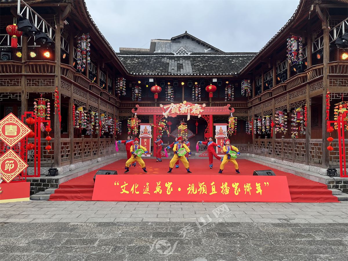 秀山網(wǎng)訊 非遺傳承流光溢彩,國(guó)風(fēng)國(guó)潮虎虎生威。為豐富廣大群眾的業(yè)余文化生活,2月11日,由縣委宣傳部指導(dǎo),縣文化旅游委主辦的“文化進(jìn)萬(wàn)家·視頻直播家鄉(xiāng)年”民俗展演活動(dòng)在雅江鎮(zhèn)精彩開演。縣委常委、宣傳部部長(zhǎng)高利參加活動(dòng)。