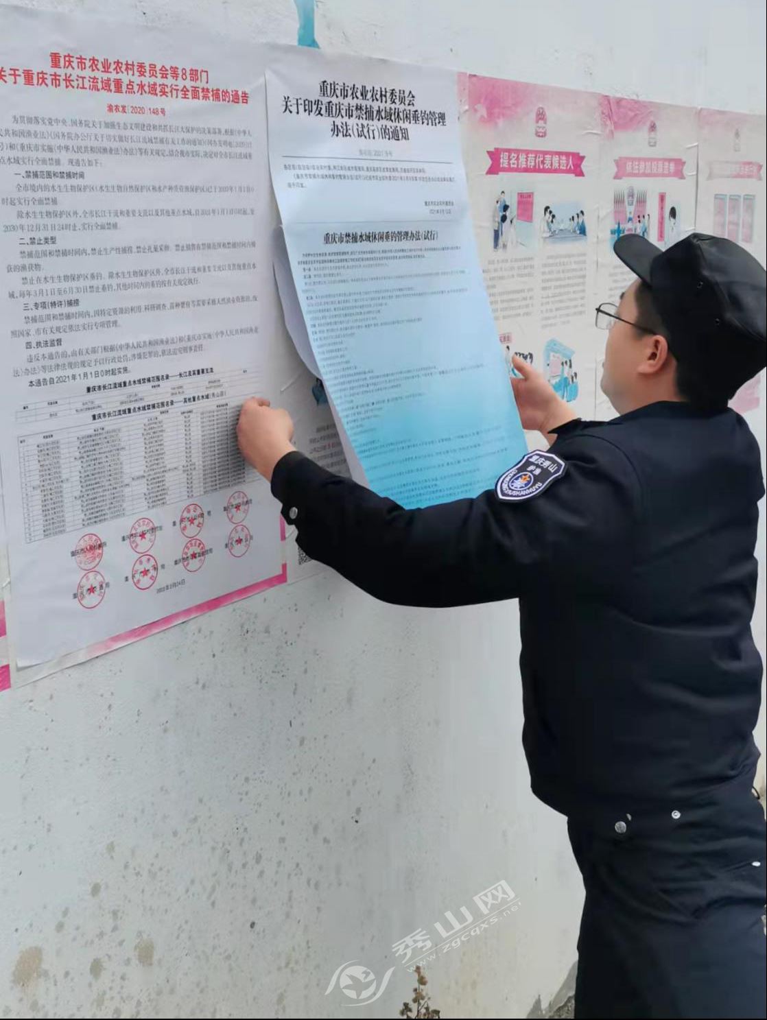 工作人員向群眾發放了《秀山土家族苗族自治縣梅江河流域水生態環境保護條例》《長江“十年禁漁”政策宣傳》和《長江“十年禁漁”案例警示》等宣傳手冊140余份,在各村醒目位置張貼宣傳海報40余張,并通過現場交流講解,宣傳長江流域“十年禁漁”的重要意義和政策要求。同時,公開舉報電話,鼓勵引導群眾爭當“禁漁”宣傳員和監督員,營造轄區群眾共同保護、主動關心和熱情參與禁漁的良好氛圍。