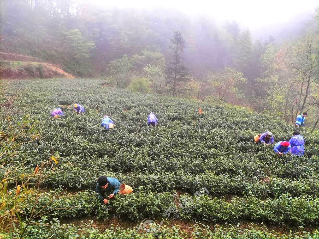 現場,幾十名采茶村民趁著大好春光,或手提籃子,或腰挎茶簍,在茶叢間來回穿梭,呈現出一派忙碌的豐收景象。