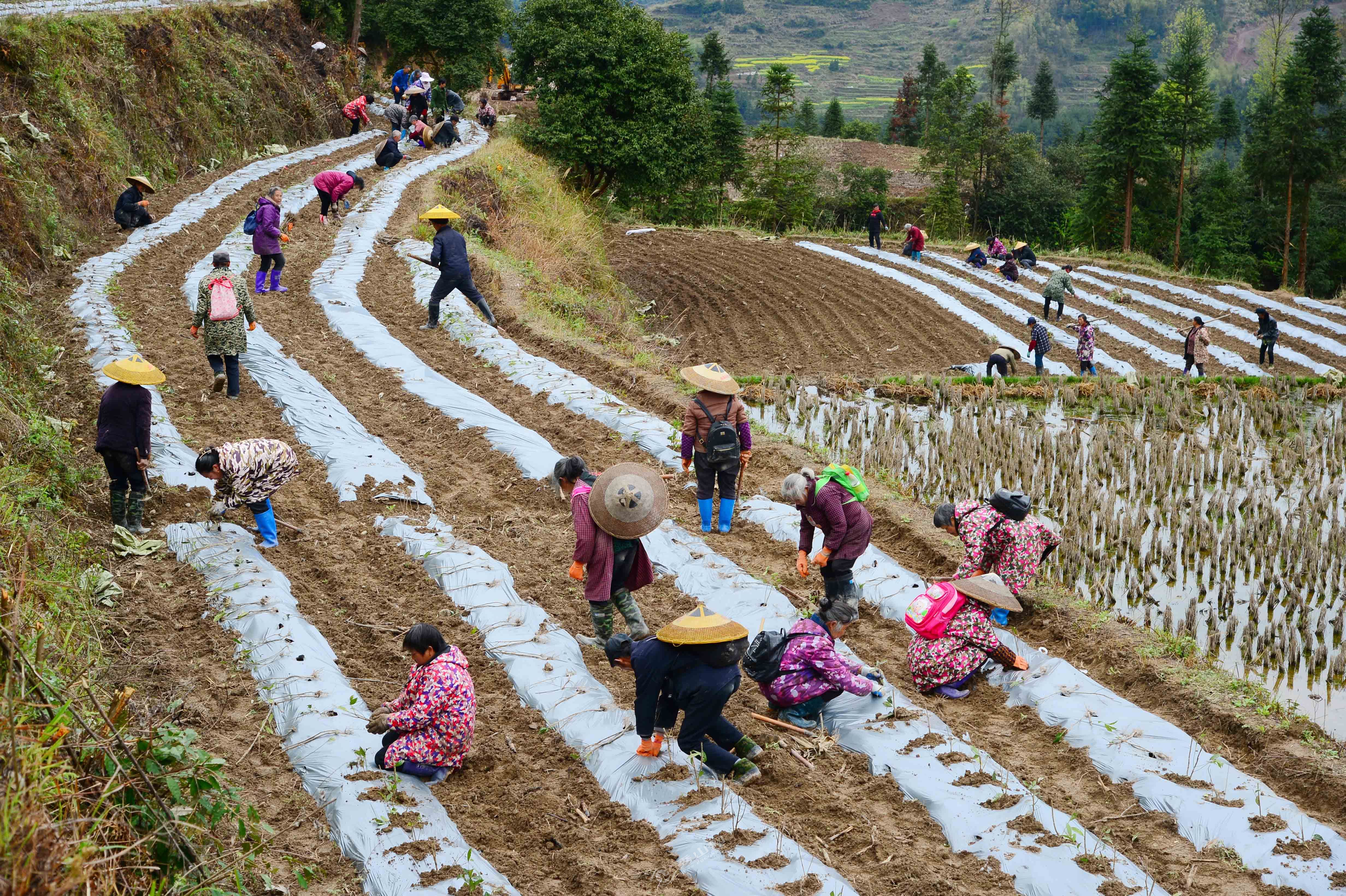 記者日前在龍池鎮(zhèn)水源村茶葉種植基地看到,30多名村民正忙著栽種茶苗。打窩、插苗、壓土……大家相互配合,分工有序。