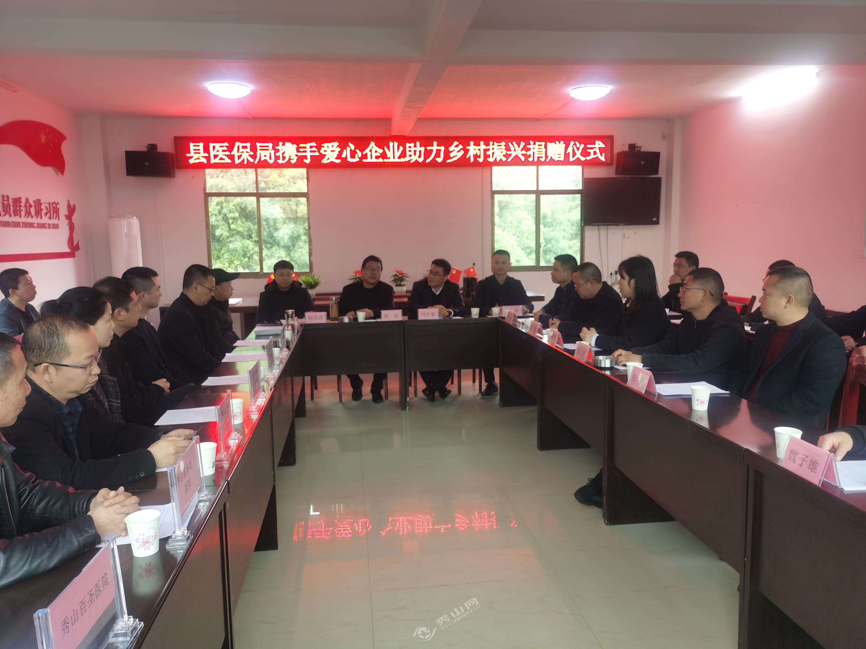 秀山網訊 3月31日,縣醫保局攜手秀山貼心中醫醫院、秀山弘濟醫院、人和藥房(重慶)有限公司等多家愛心企業走進海洋鄉,開展“助力鄉村振興”捐贈活動??h人大常委會副主任楊波出席活動。