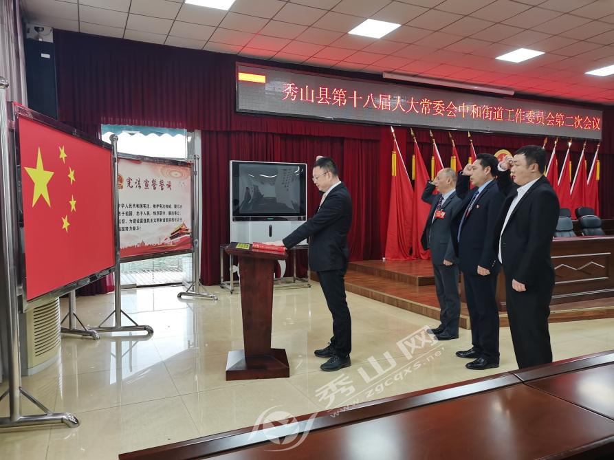 會議宣布了縣人大常委會中和街道工作委員會委員名單,為新任委員頒發任命書并進行憲法宣誓。