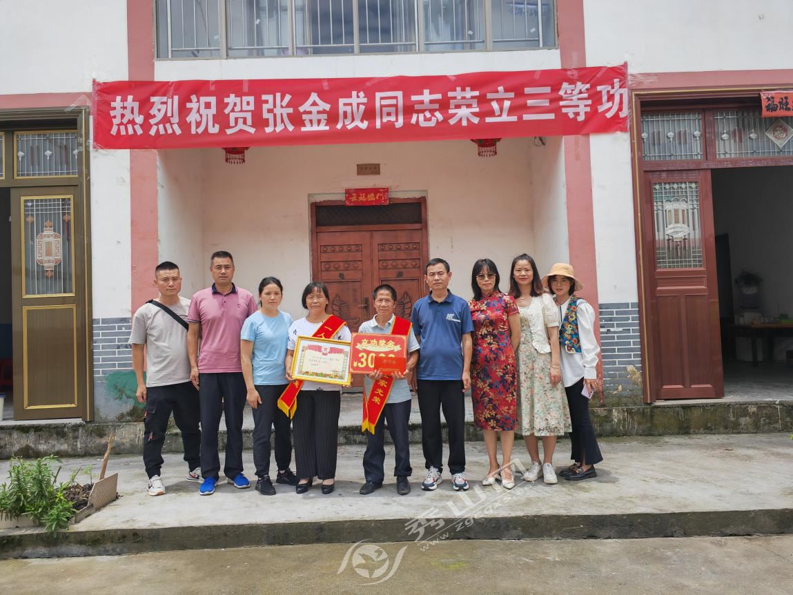 秀山網訊 6月6日,縣退役軍人事務局與龍池鎮相關負責人一起,前往該鎮現役軍人張金成家中,將他在部隊榮立三等功的立功喜報,送到其家屬手中,并表示熱烈祝賀。