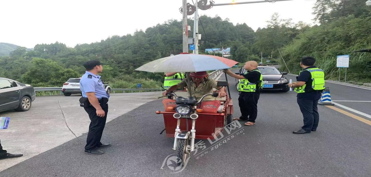 秀山網訊 7月14日,大溪鄉應急辦、石堤派出所駐豐聯勸導站聯合開展摩托車、電動車非法加裝遮陽(雨)傘專項整治行動。