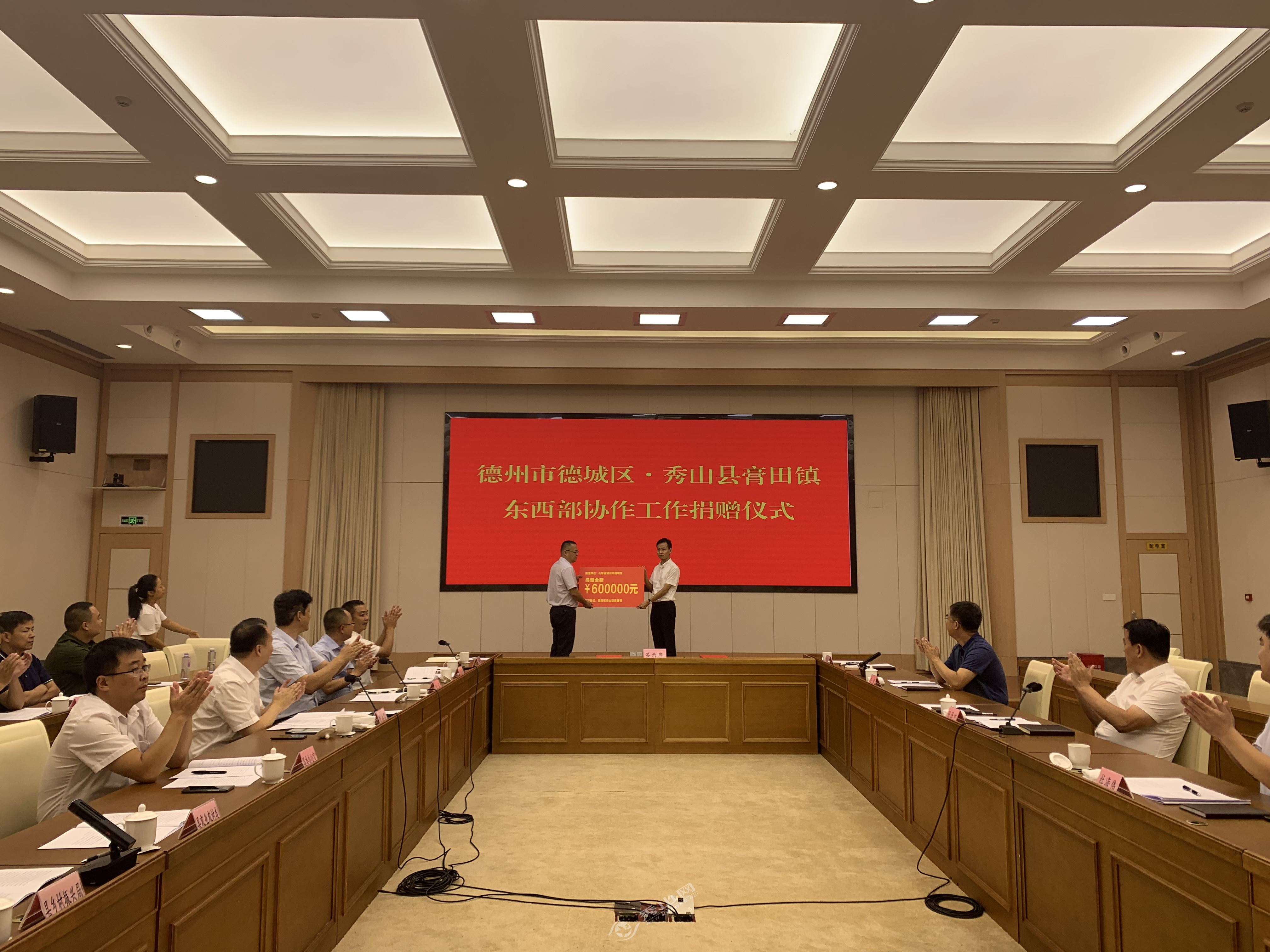 在當(dāng)天召開(kāi)的德州市德城區(qū)·秀山縣膏田鎮(zhèn)東西部協(xié)作工作聯(lián)席會(huì)議上,張澤中一行聽(tīng)取了我縣經(jīng)濟(jì)社會(huì)發(fā)展情況、膏田鎮(zhèn)東西部扶貧協(xié)作工作匯報(bào);德城區(qū)與膏田鎮(zhèn)簽訂了對(duì)口幫扶協(xié)議,并向膏田鎮(zhèn)捐贈(zèng)了幫扶資金60萬(wàn)元。