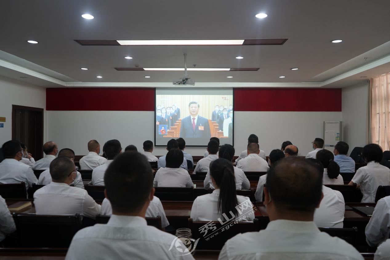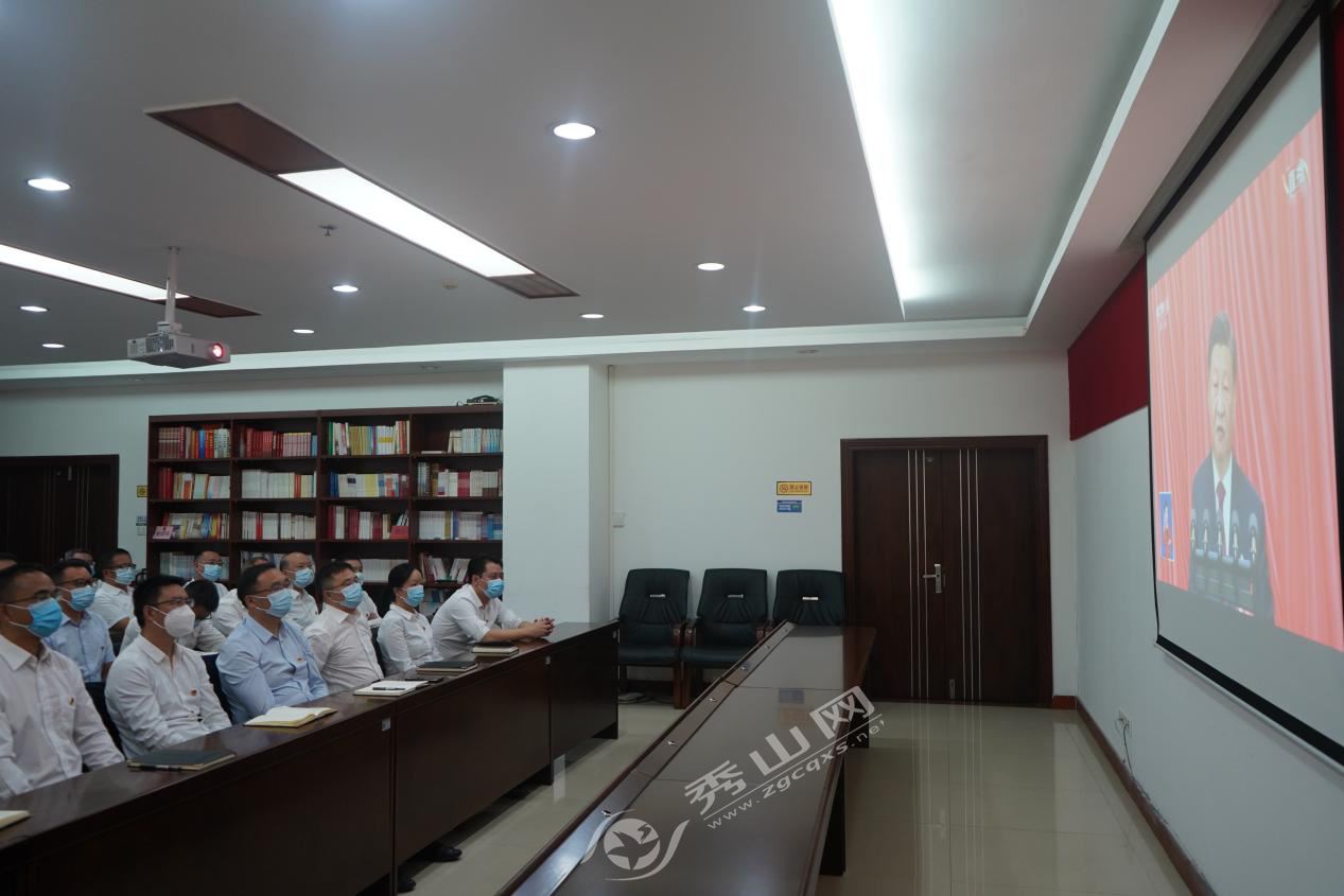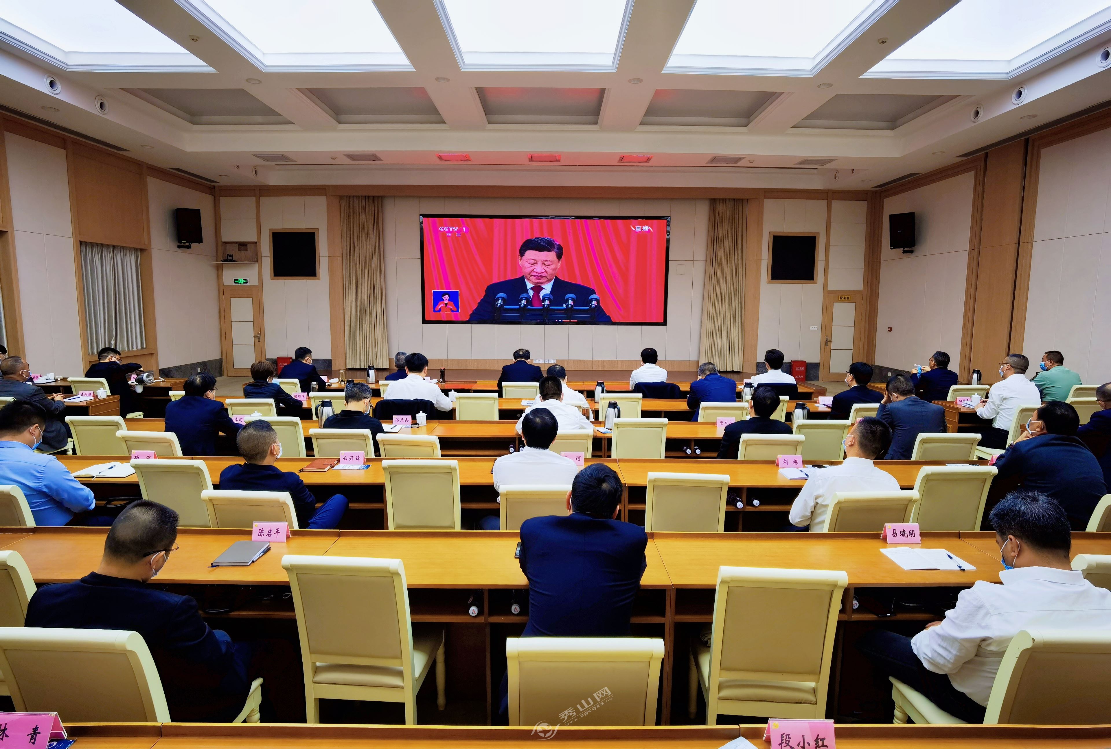 縣委副書記、縣長馬文森,縣人大常委會主任周傳明,縣政協主席任強,縣委副書記任序江等縣領導在行政中心小會議廳集中收聽收看黨的二十大開幕會。