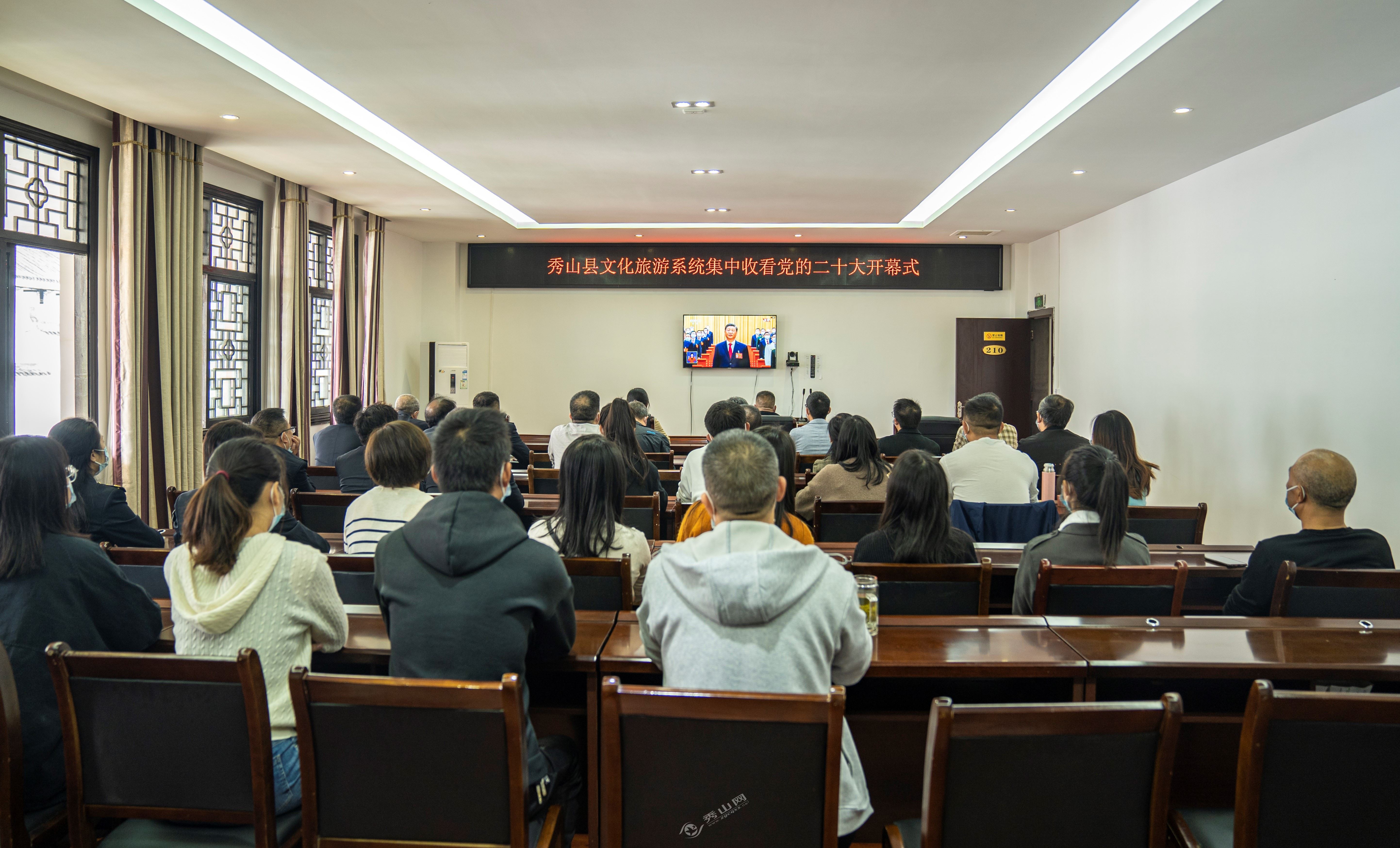 秀山各界干部群眾收聽收看黨的二十大開幕會。