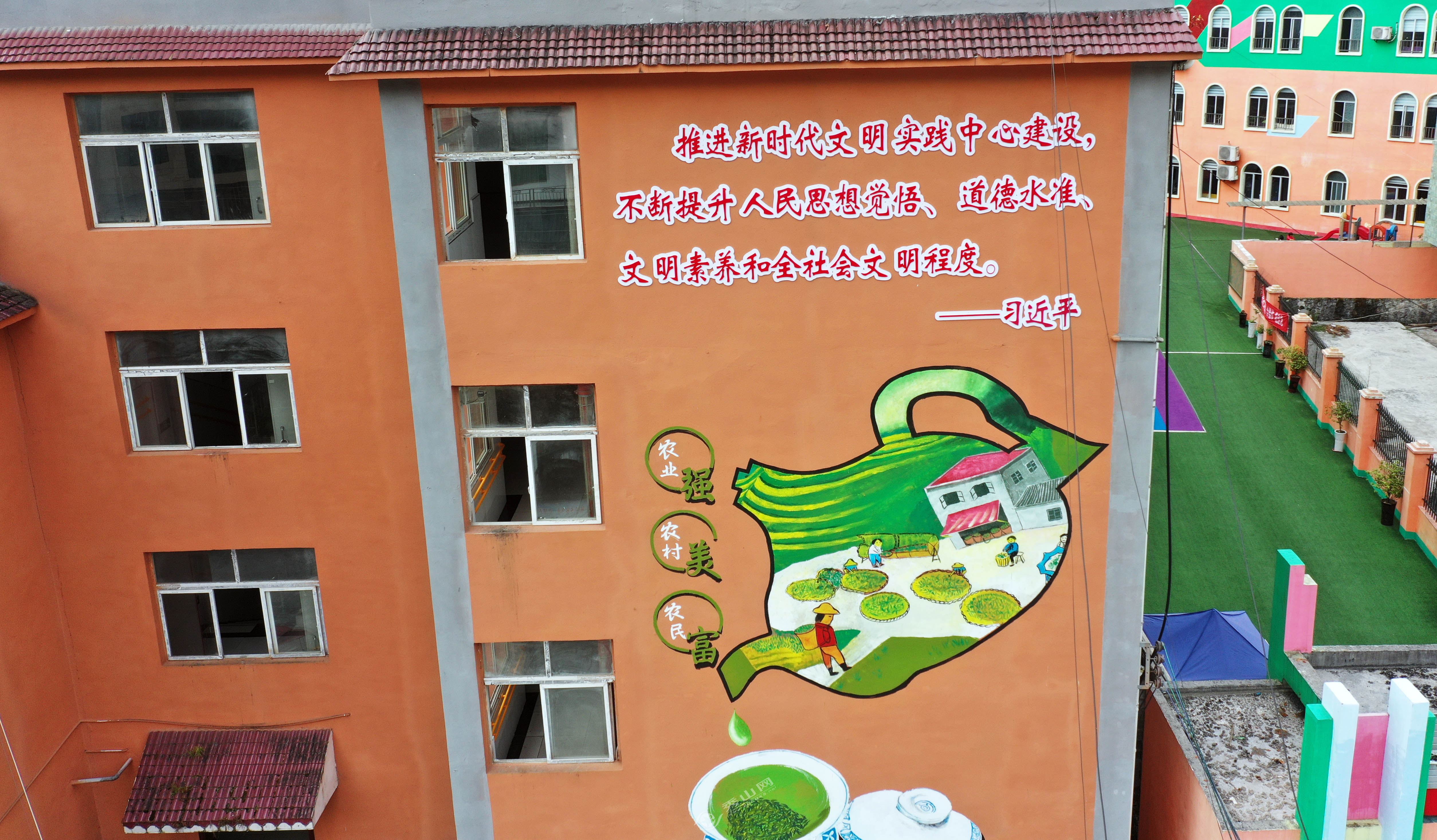 除了優(yōu)美的自然環(huán)境,凱賀村積極推動(dòng)易地扶貧搬遷,建成了規(guī)模達(dá)105棟、600余人的安置小區(qū),風(fēng)格統(tǒng)一的靚麗新居也是凱賀村獨(dú)有的村景。這里的墻繪生動(dòng),一幅幅繪制精美、構(gòu)思巧妙、內(nèi)容豐富的創(chuàng)意墻畫和文化標(biāo)語隨處可見。