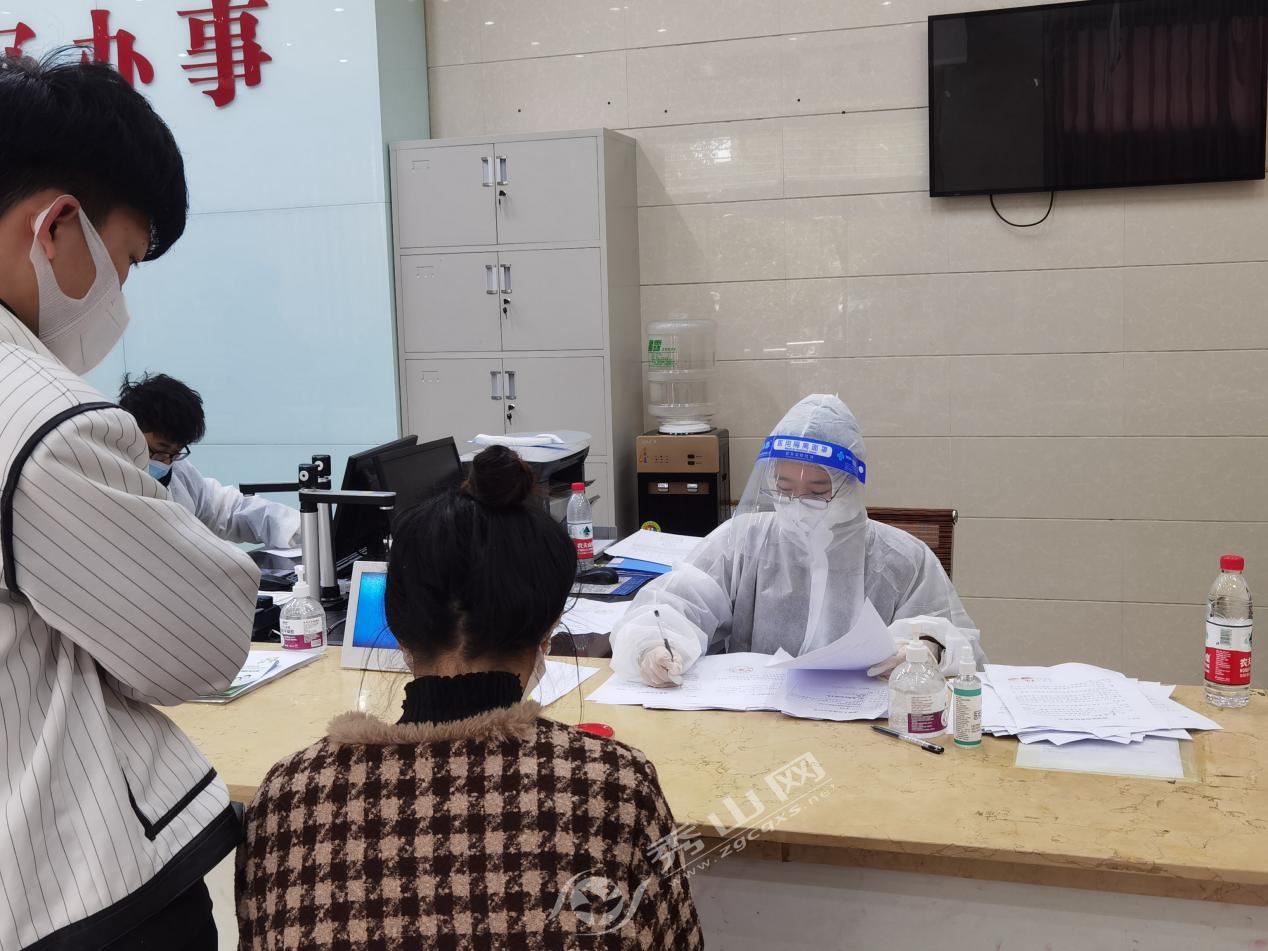 縣稅務局青年志愿者吳泳杭在中和街道辦事處服務大廳為滯流秀山群眾辦理離秀手續。