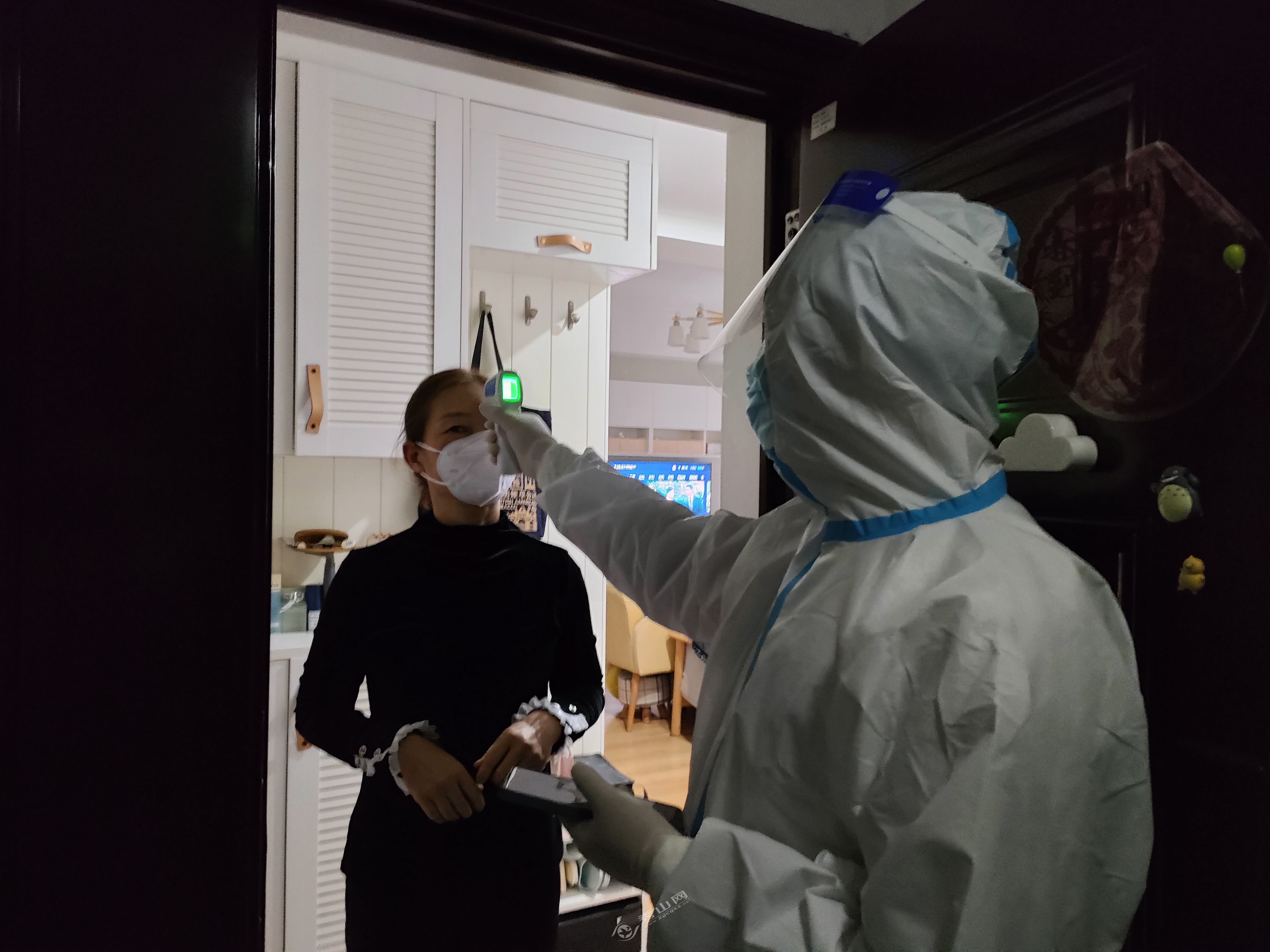 政法委干部程衛所住小區封控,就地轉為志愿者為居家人員檢測體溫