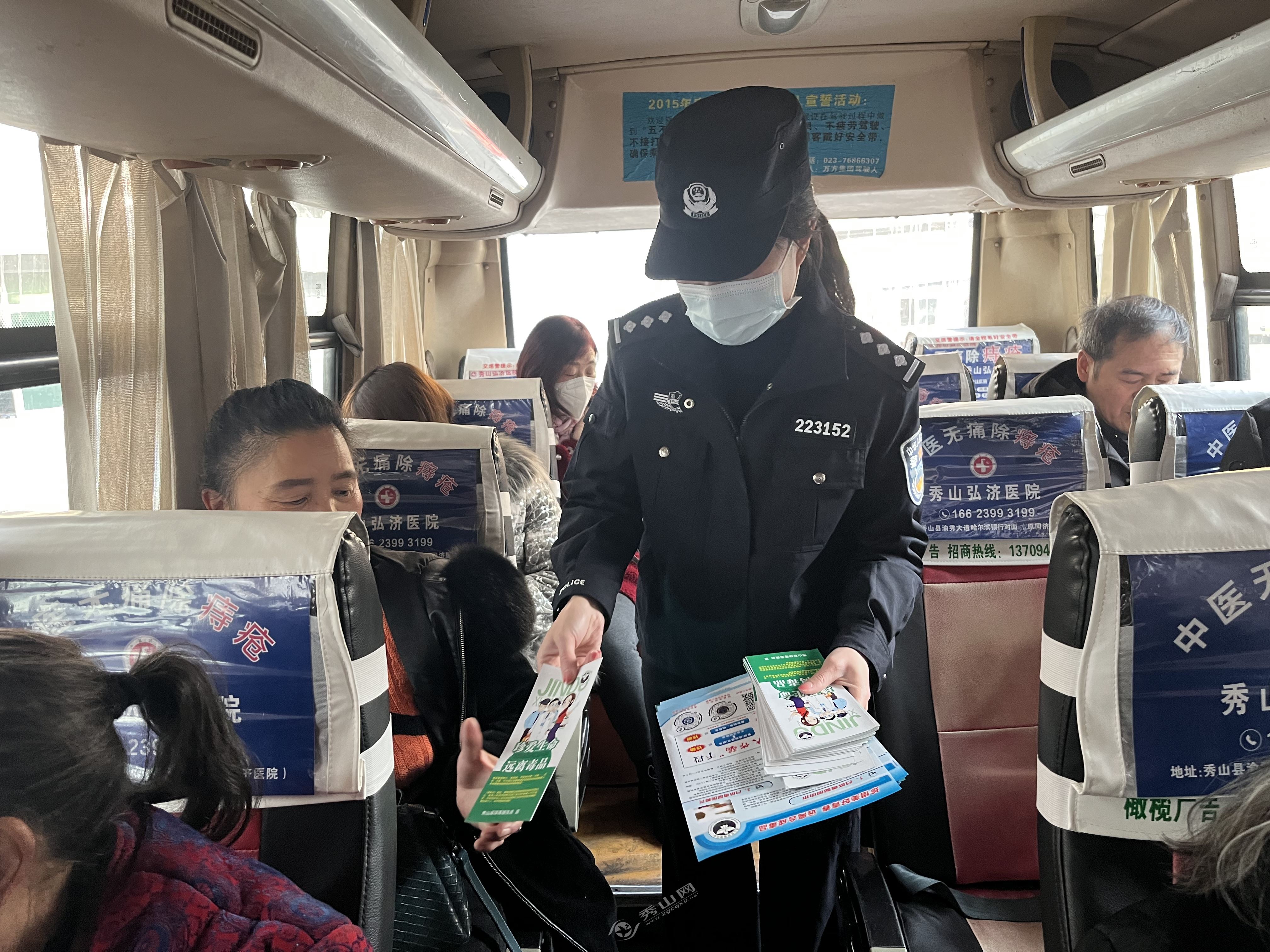 在秀山縣汽車總站,民警和禁毒志愿者通過集中宣傳和流動宣傳相結合的方式,采取設置禁毒宣傳臺、擺放禁毒宣傳展板、展示仿真毒品模具、發放禁毒宣傳資料及禁毒宣傳紀念品的形式,向過往群眾介紹禁毒知識。期間,工作人員還利用旅客候車間隙,向旅客派發禁毒宣傳單和紀念品,普及新型毒品的各類偽裝及防毒技巧,呼吁廣大群眾珍愛生命、遠離毒品。