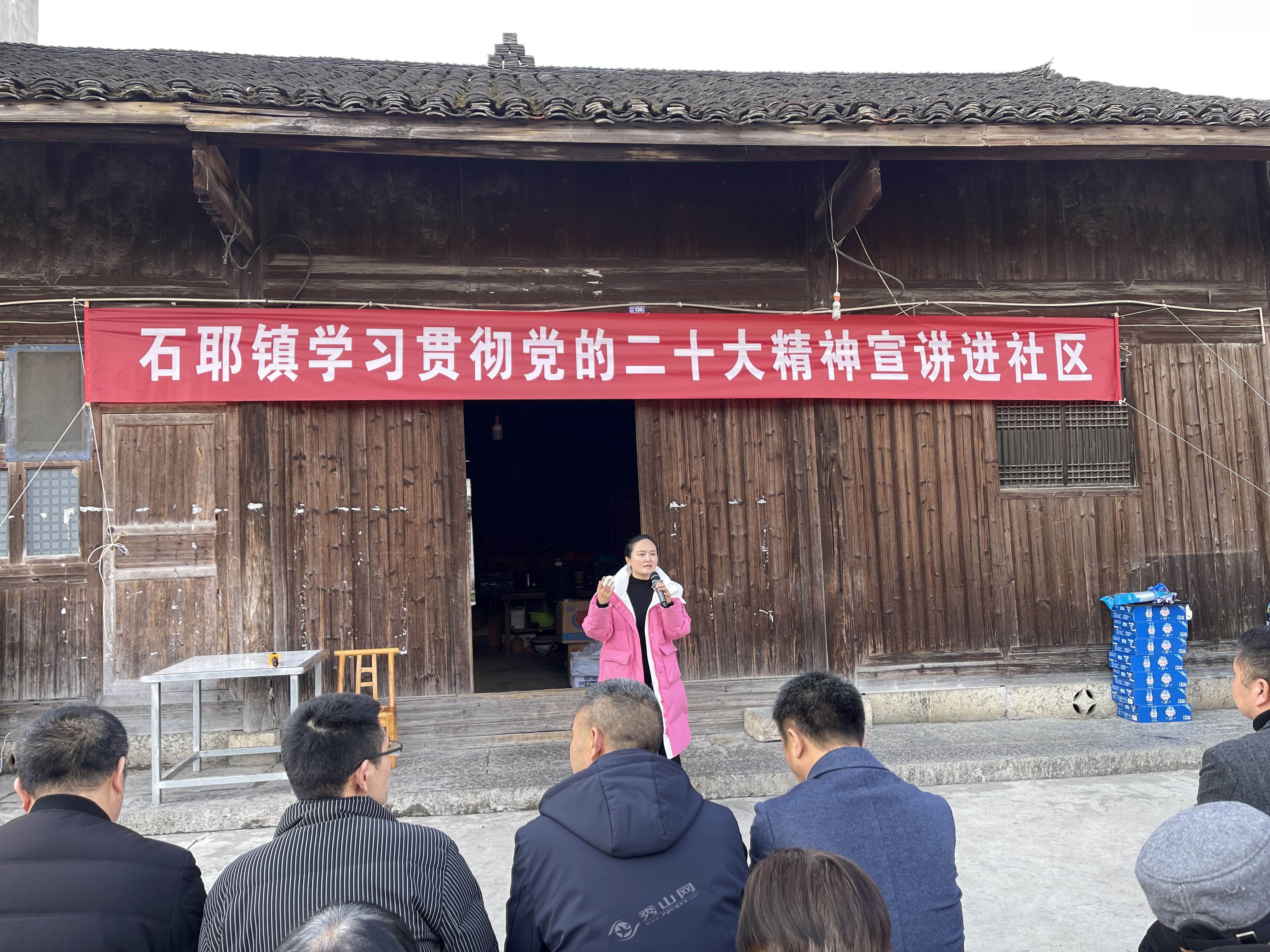 活動現場,石耶鎮黨委書記程軼抓住人流聚集的機會,為當地居民宣講黨的二十大精神。她結合石耶鎮實際,用通俗易懂的語言,暢談學習黨的二十大精神的收獲和體會,并激勵社區老黨員、志愿者、基層干部、居民“聽黨話、感黨恩、跟黨走”,為全面建設社會主義現代化國家貢獻力量。