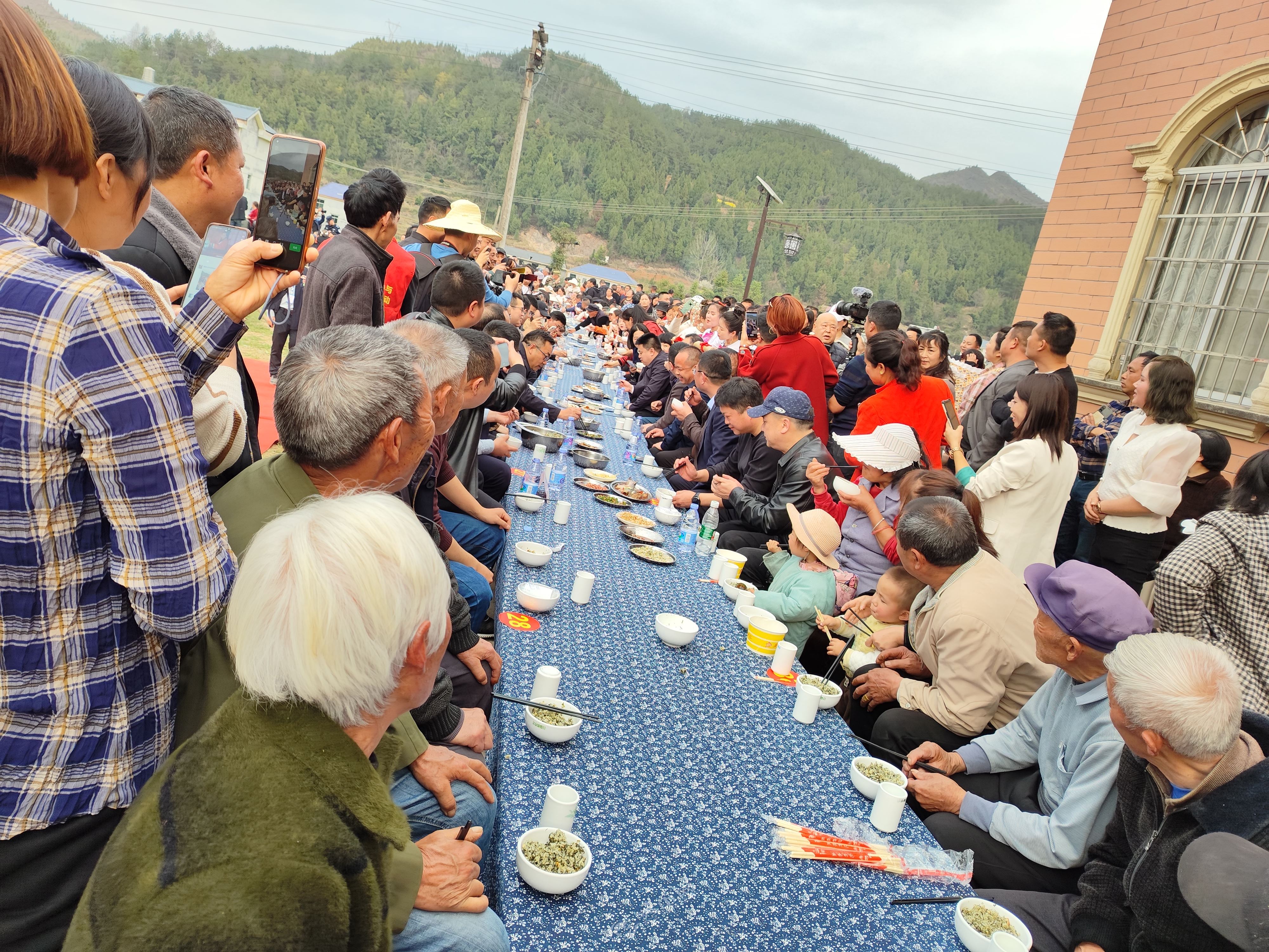 臺下形似長龍的百米宴會桌擺得整整齊齊,各式各樣的美食一上桌就引得大家爭相品嘗,現場更是唱起了祝酒歌,熱情款待四方賓客。