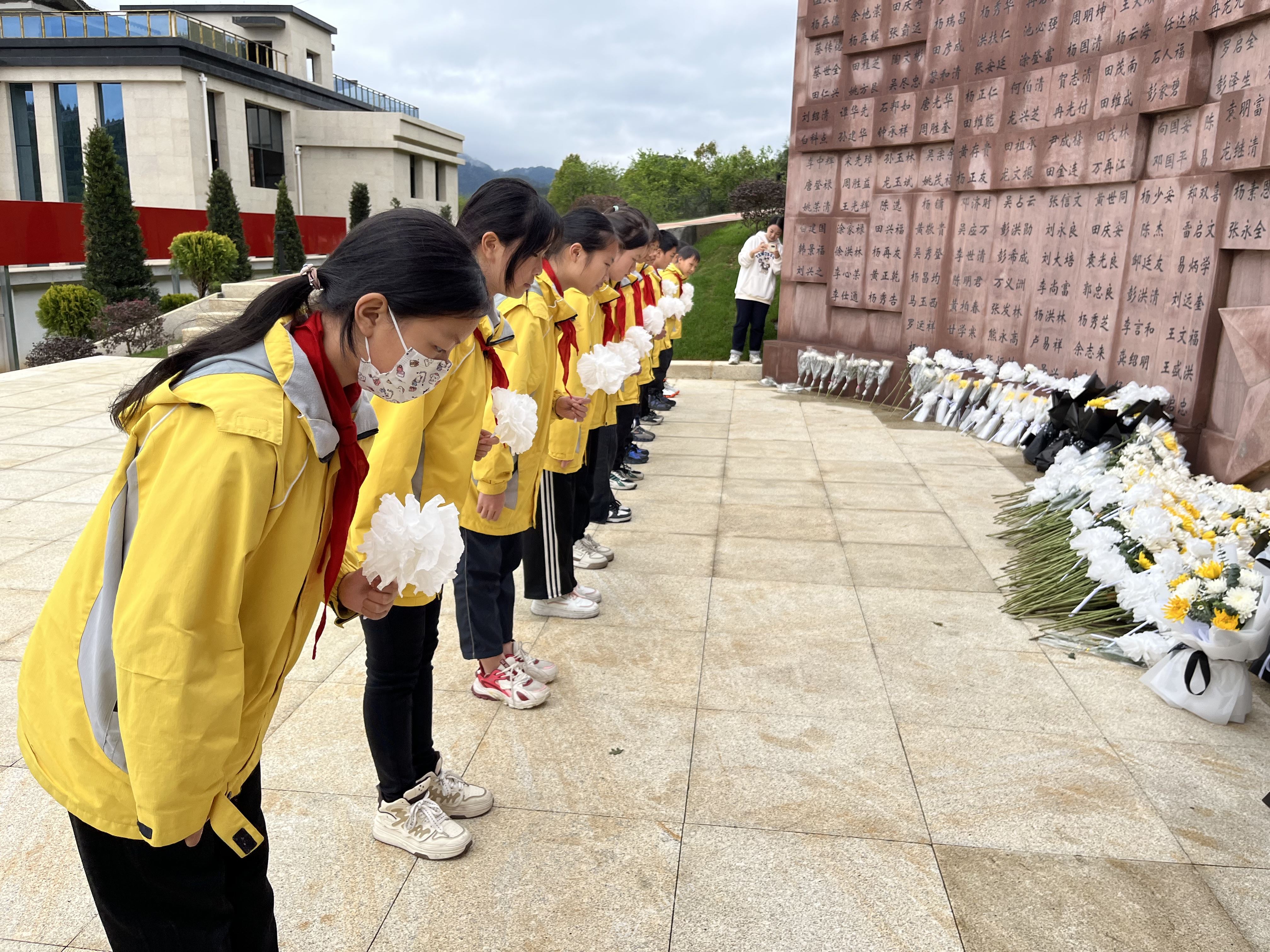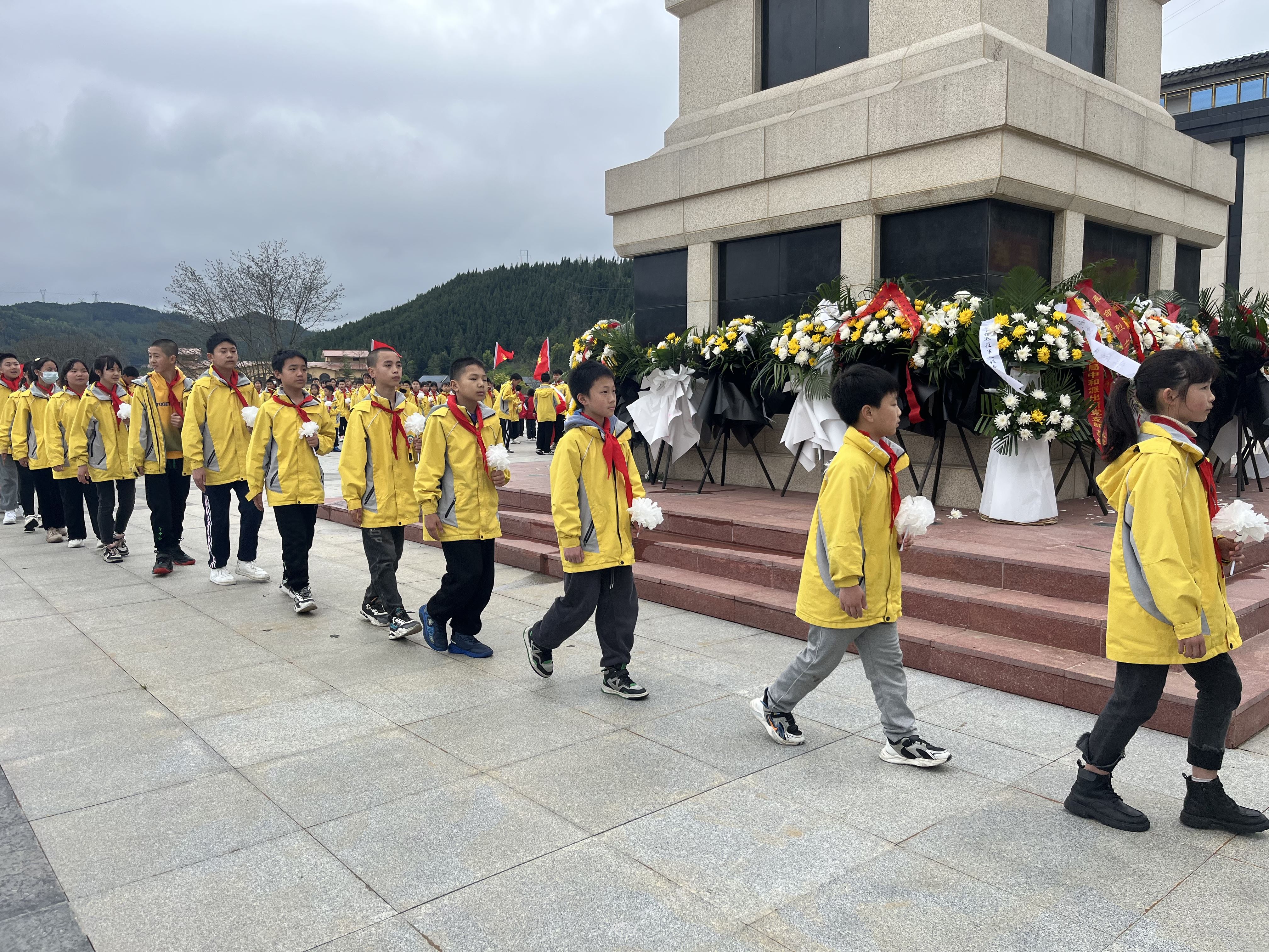 活動中,全體人員向烈士紀念碑鞠躬、默哀致敬,縣五老報告團成員、全國關心下一代工作先進個人葉天君向大家講述了革命烈士事跡,全體少先隊員們重溫了入隊誓詞并為烈士獻上自制的小白花。