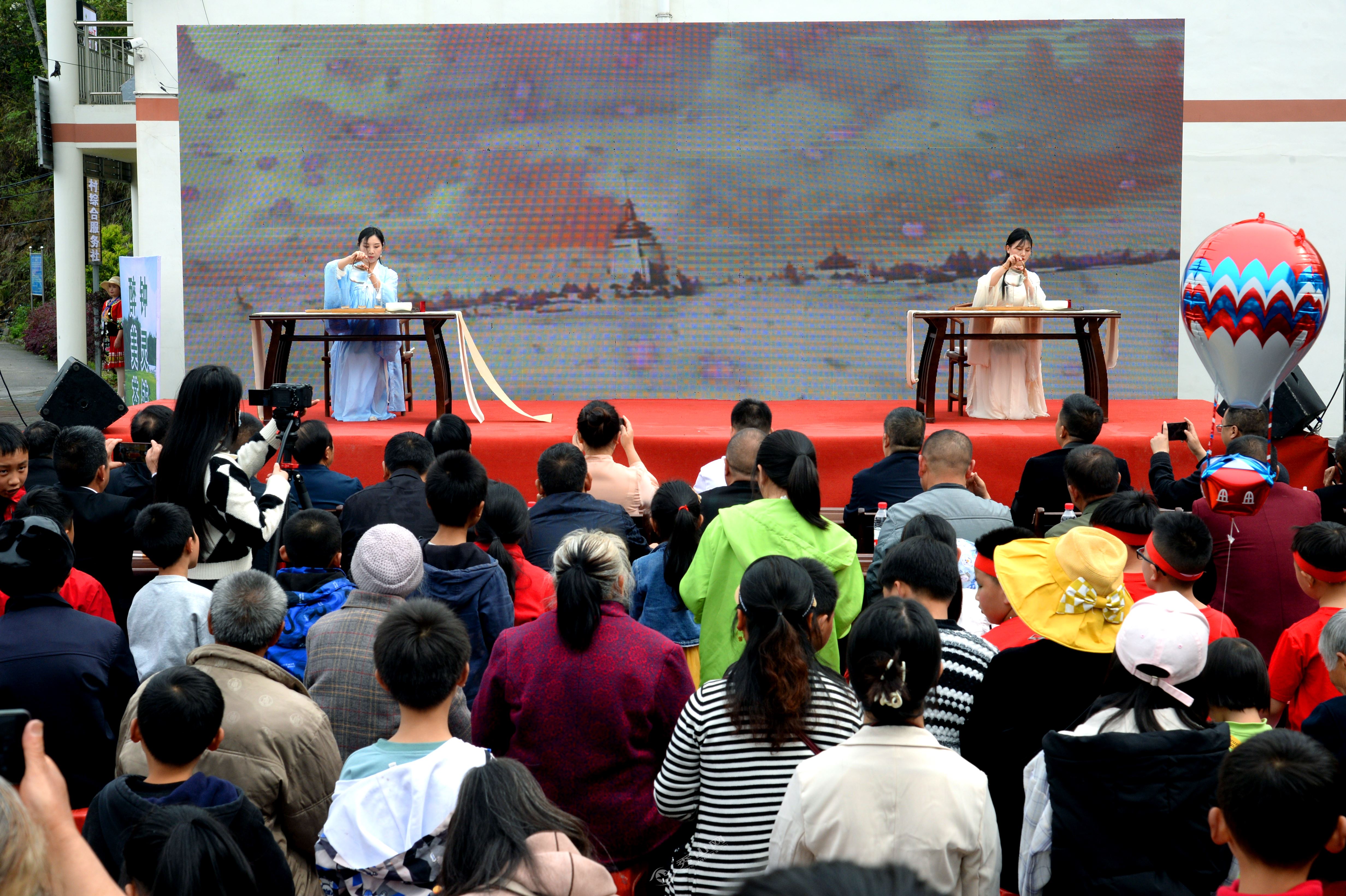 為豐富活動內容,現場還進行了茶藝表演,開展了文藝演出和手工制茶體驗、茶產品及農特產品展示展銷、地方特色小吃等,吸引了眾多游客和市民參與。值得一提的是,活動當天還準備了“長桌宴”,為活動增添了熱鬧喜慶氛圍,地道的農家菜肴讓游客和市民大飽口福。