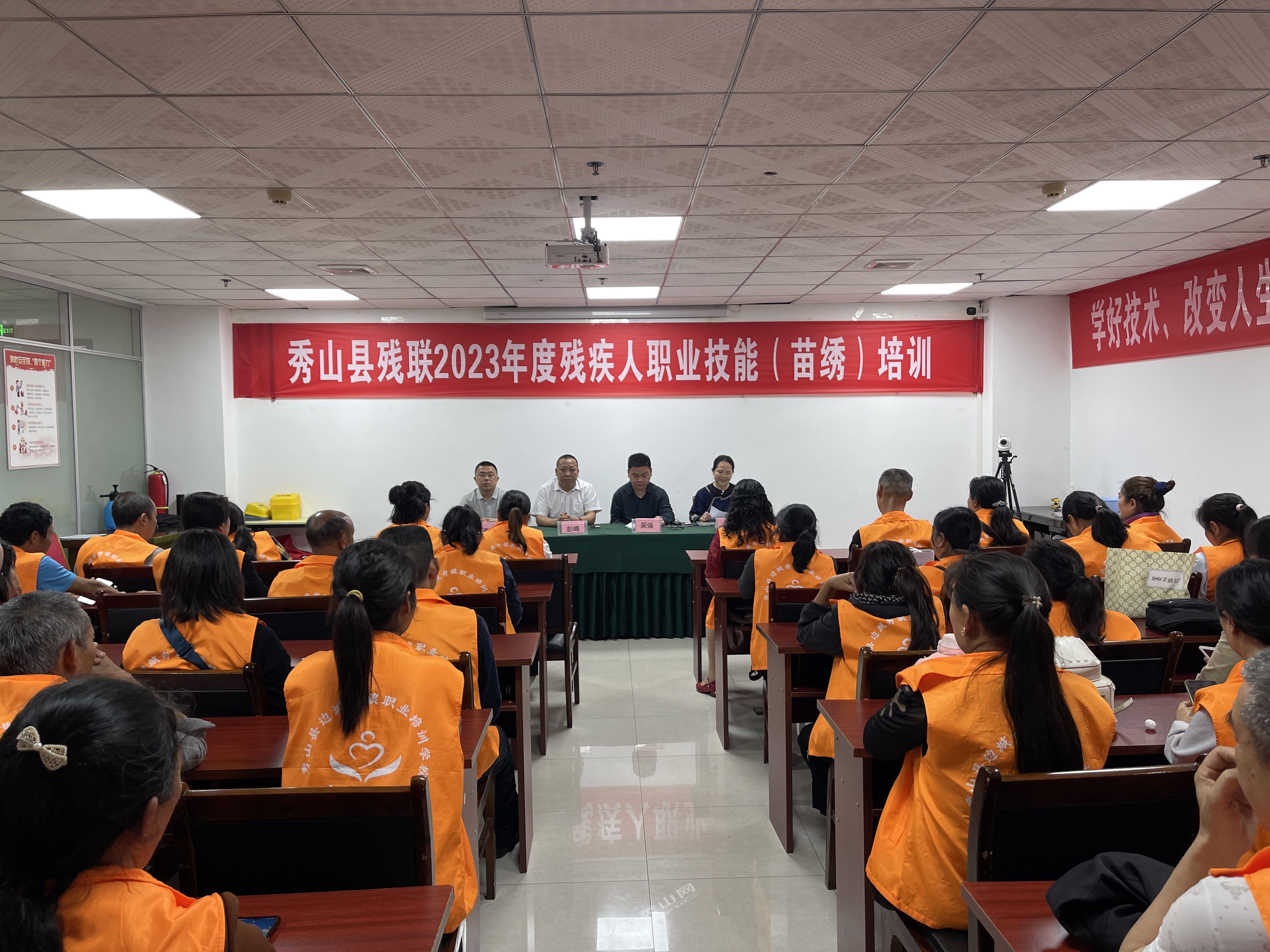 秀山網訊 為進一步加強殘疾人群體技能培訓,4月21日,縣殘聯在秀山邊城秀娘職業培訓學校舉行2023年度殘疾人技能(苗繡)培訓開班儀式。