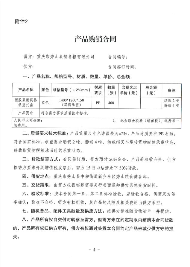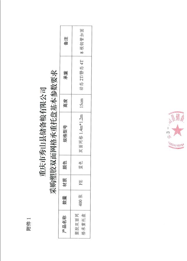 附件:1.重慶市秀山縣儲備糧有限公司采購塑膠雙面網格承重托盤基本參數要求
