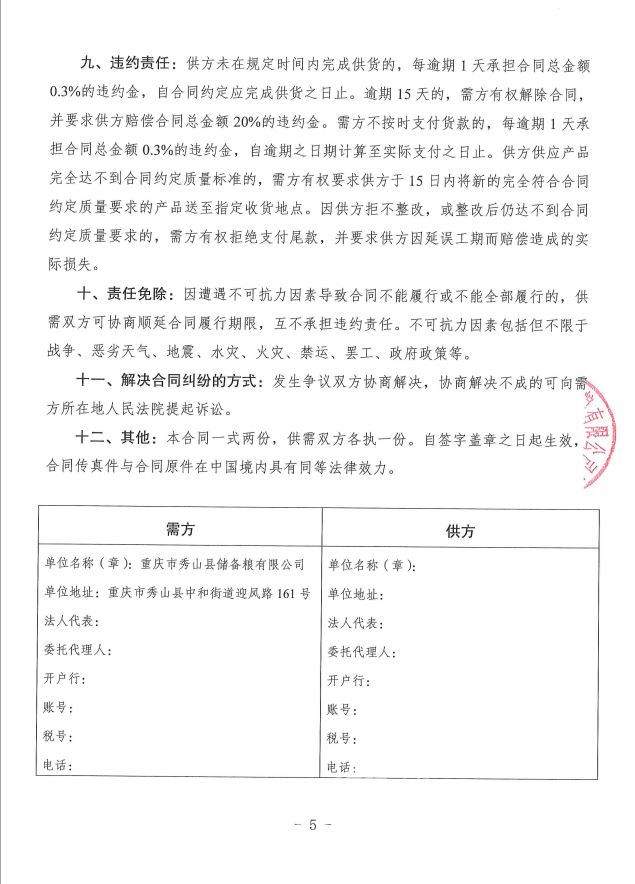 七、聯系方式:胡薇力,聯系電話:18225351607;郵箱:494119386@qq.com;聯系(郵寄)地址:重慶市秀山縣中和街道新齊社區秀山糧食儲備庫。報價人可通過郵寄和發送郵箱的方式將報價資料(需蓋章)送達我公司指定聯系人。
