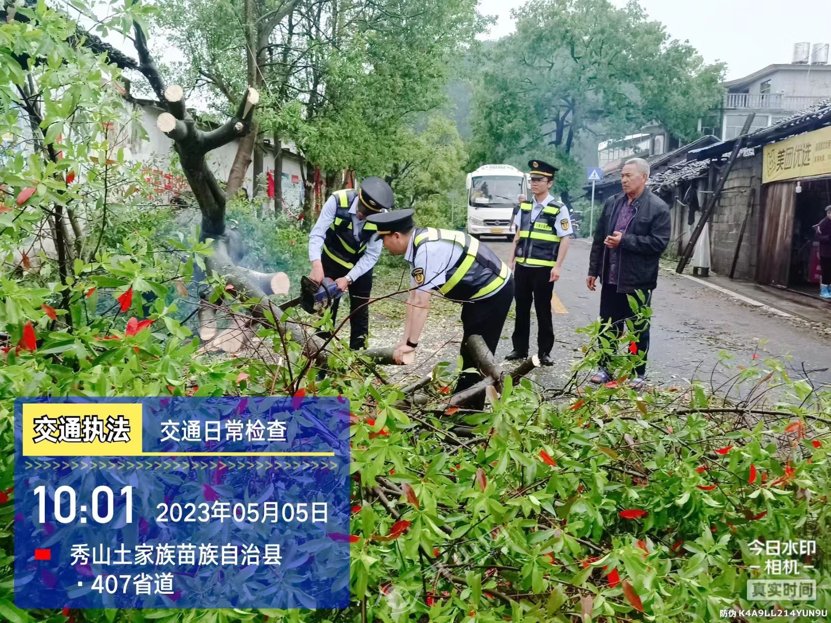 5月5日,執(zhí)法人員在里仁鎮(zhèn)和407省道開展路面巡查過程中發(fā)現(xiàn),有行道樹倒伏在道路中間,影響車輛正常通行。執(zhí)法人員隨即對(duì)該路段進(jìn)行了交通管制,及時(shí)清理倒伏在道路上的行道樹,第一時(shí)間消除了安全隱患,確保道路交通安全。