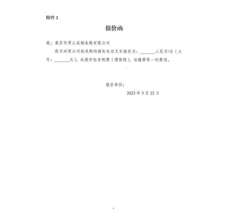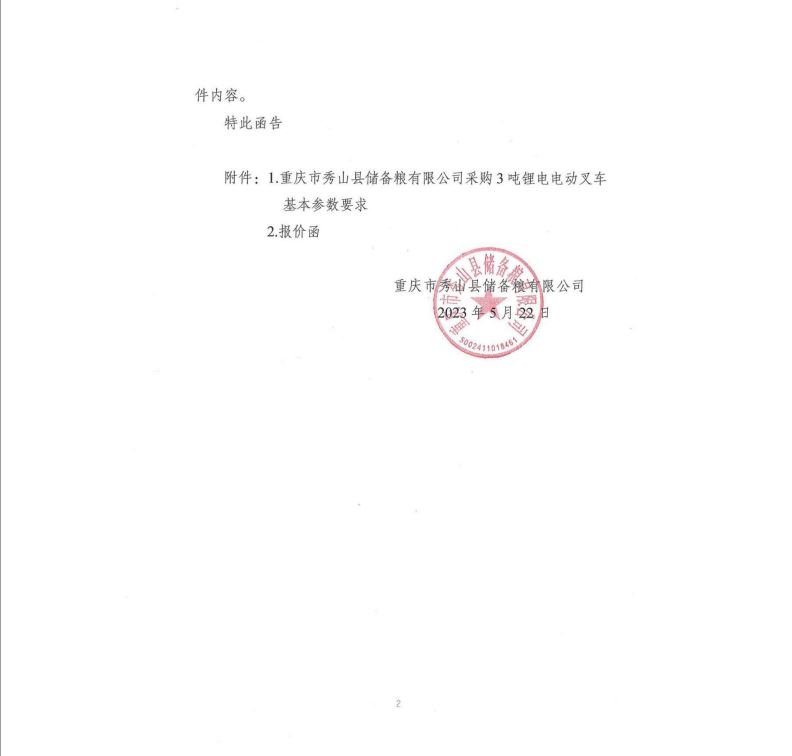 一、項目名稱:重慶市秀山縣儲備糧有限公司3噸鋰電電動叉車采購項目。