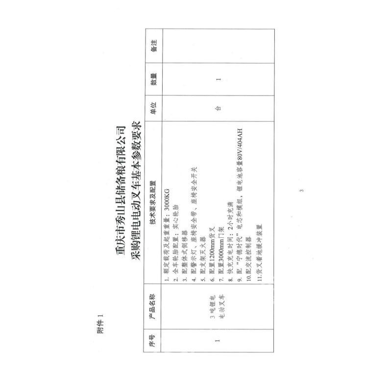 附件:1.重慶市秀山縣儲備糧有限公司采購3噸鋰電電動叉車基本參數要求