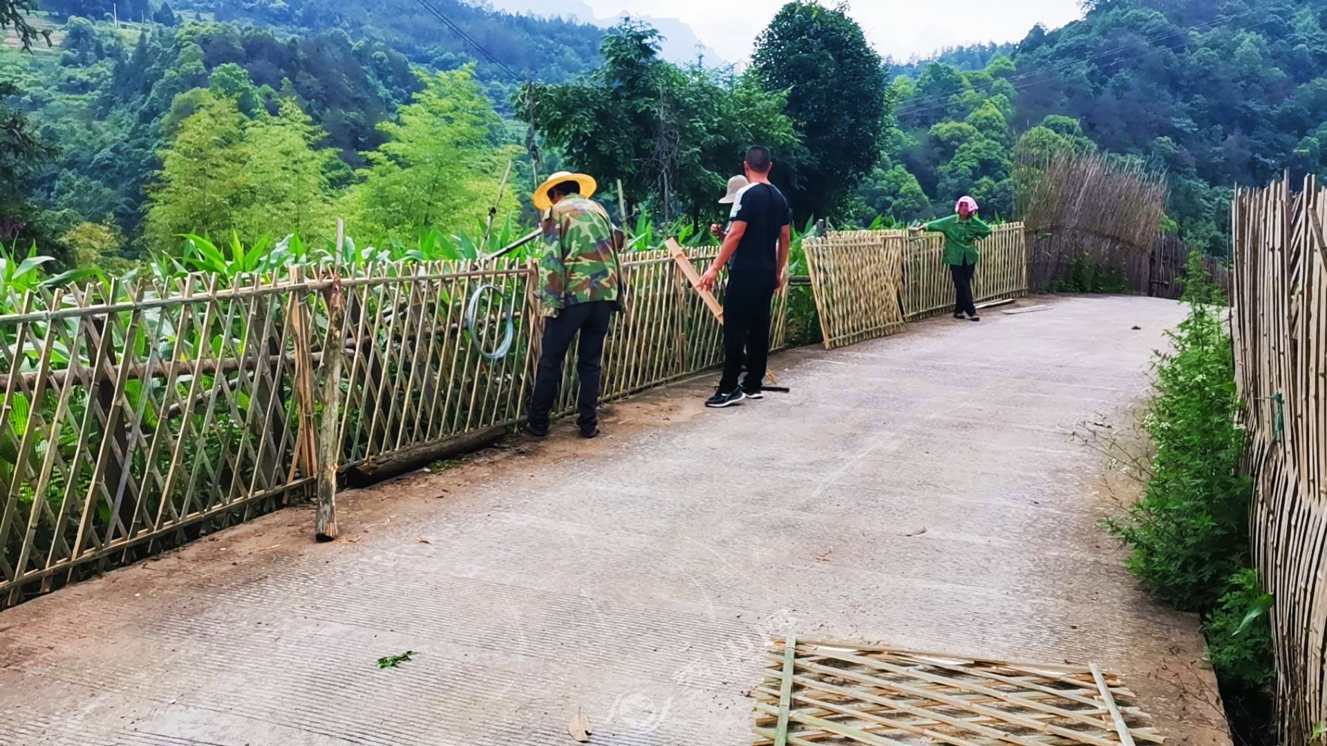 靚麗村寨在建設(shè),共建靚麗鄉(xiāng)村。在選定上寨組為村莊靚化建設(shè)示范點(diǎn)后,下大溪村黨支部帶頭、上寨組在家群眾義務(wù)投工投勞,利用空閑時間,就地取材,以當(dāng)?shù)亻駷樽o(hù)欄材料,自行制作圍欄。截至5月29日,共計(jì)完成30余戶院壩、通組公路、菜園子圍欄安裝2000余米,新建庭院花臺30余個,栽種三角梅200余株,播種百日菊種子20余斤,目前已形成示范點(diǎn)建設(shè)。