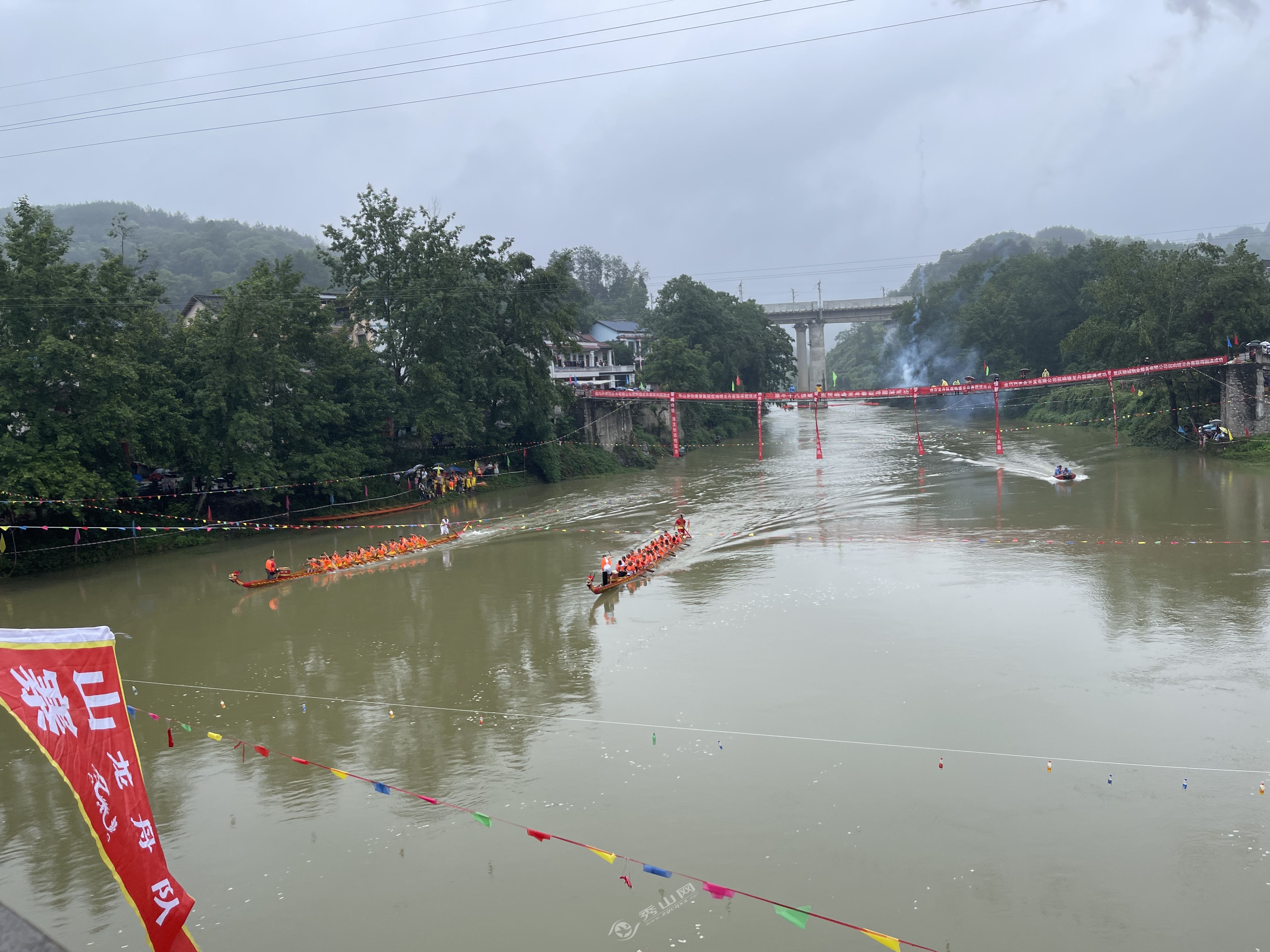秀山網訊 6月22日(農歷五月初五),熱鬧的龍舟比賽一大早便點燃妙泉鎮熱水塘村的節日氣氛,賽龍舟、歌舞表演,熙熙攘攘好不熱鬧。