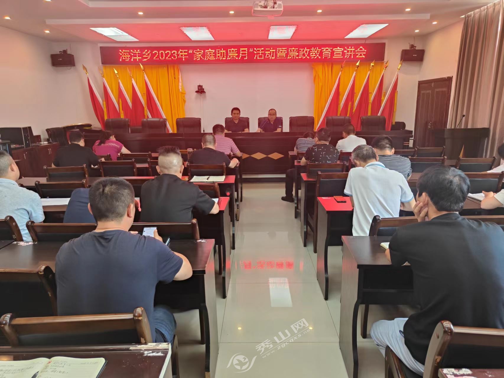 秀山網訊 為不斷加強新時代廉潔文化建設,增強廉潔自律意識,筑牢廉潔思想防線,持續鞏固風清氣正的良好政治生態,6月26日,海洋鄉召開“家庭助廉月”活動暨廉政教育宣講會,全體干部職工40余人參加。
