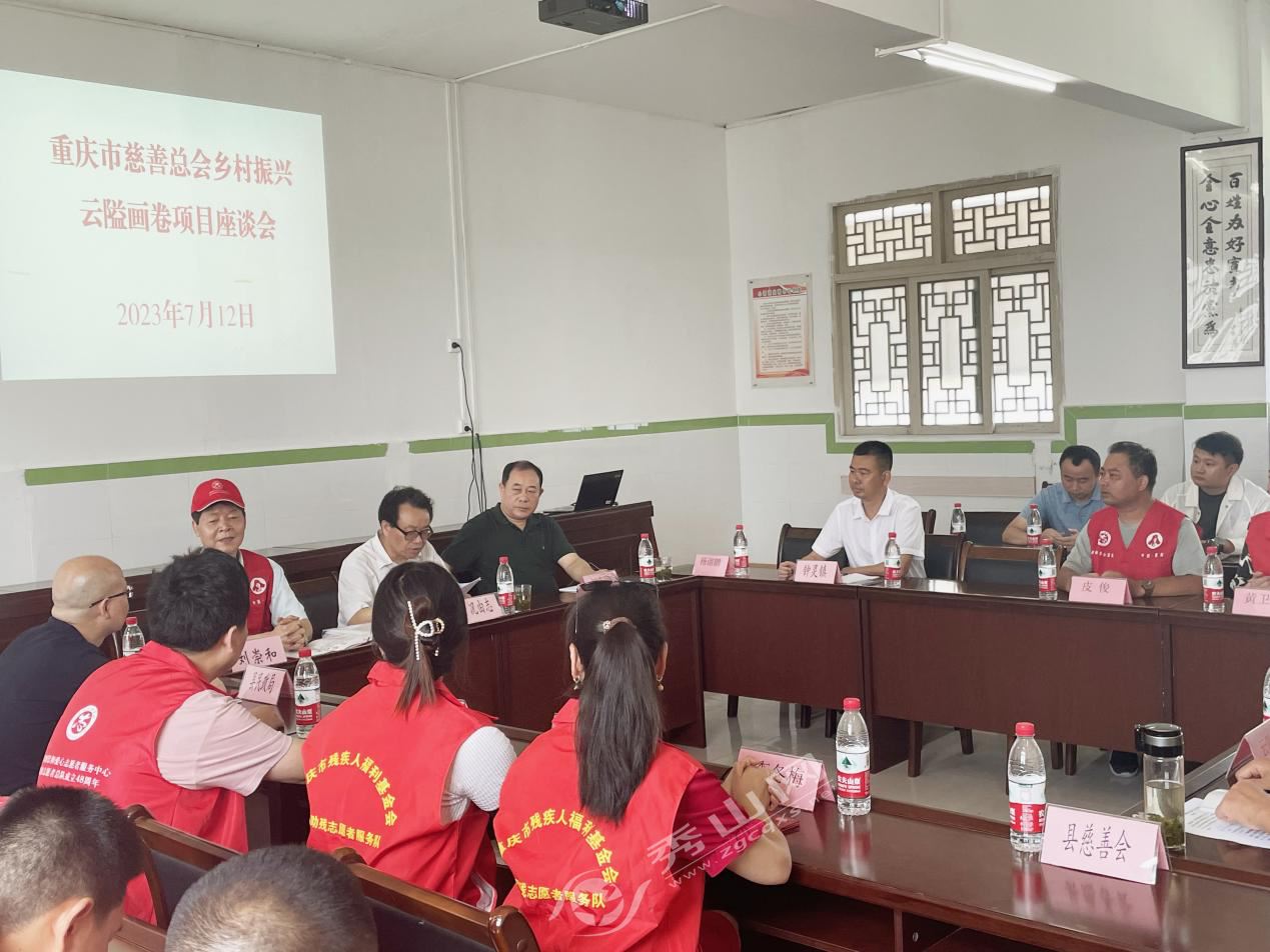 捐贈活動后,況由志主持召開重慶市慈善總會鄉村振興云隘畫卷項目座談會,就該村加強慈善超市,抖音、公益寶平臺建設以及社區陽光基金管理等方面提出建議,并期望各愛心企業持續關心幫助云隘村的發展,切實解決好特殊困難群體的急難愁盼問題,為云隘畫卷注入新動能。