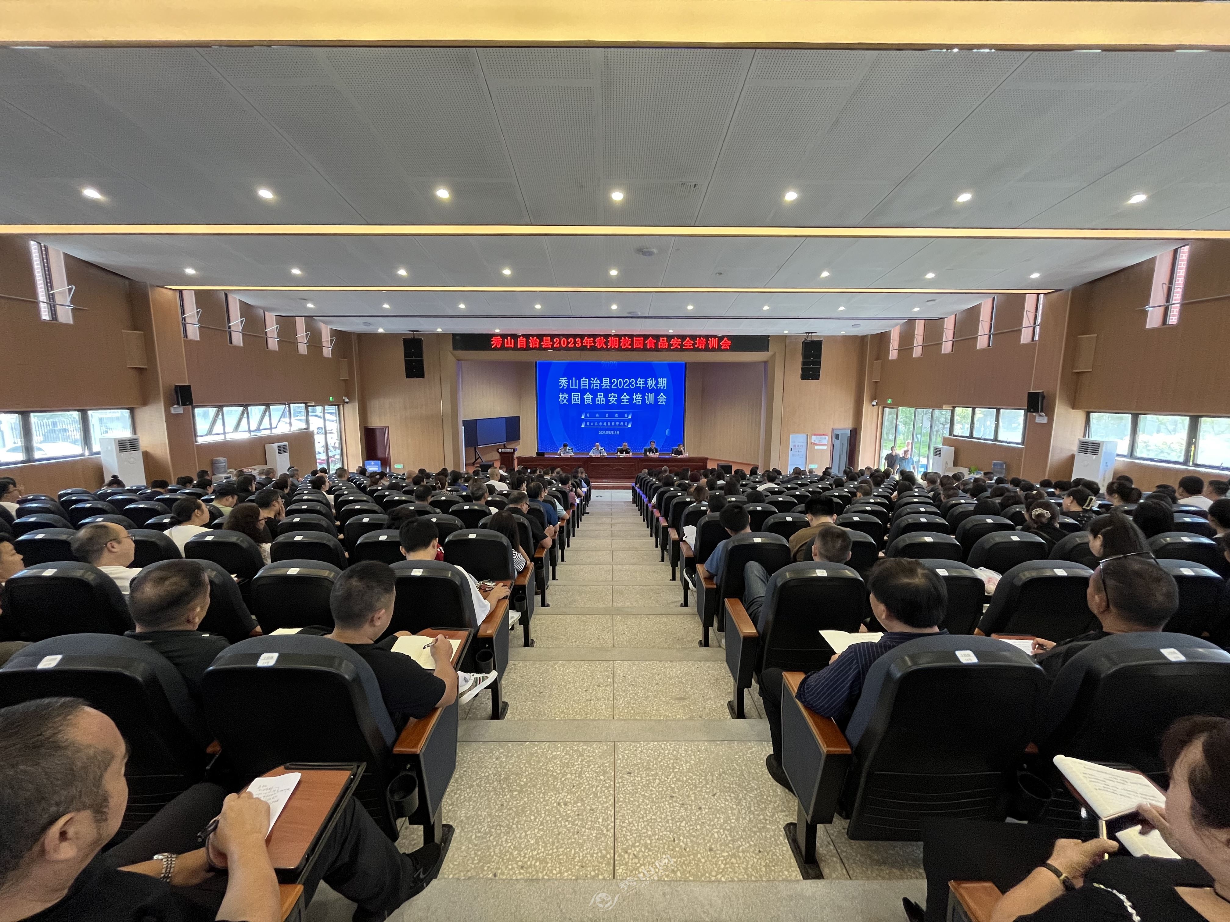 秀山網訊 為加強重點領域餐飲食品安全,深化落實集中供餐單位餐飲食品安全主體責任,9月15日上午,縣市場監管局聯合縣教委在鷺秀小學召開全縣重點領域餐飲單位食品安全培訓會議。縣市場監管局分管領導、餐飲科全體工作人員、全縣重點領域餐飲單位分管食品安全負責人和管理員近400人參加會議。