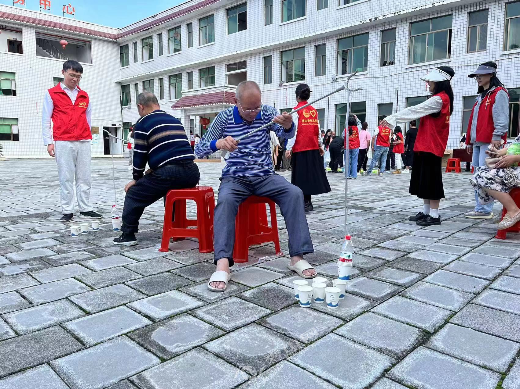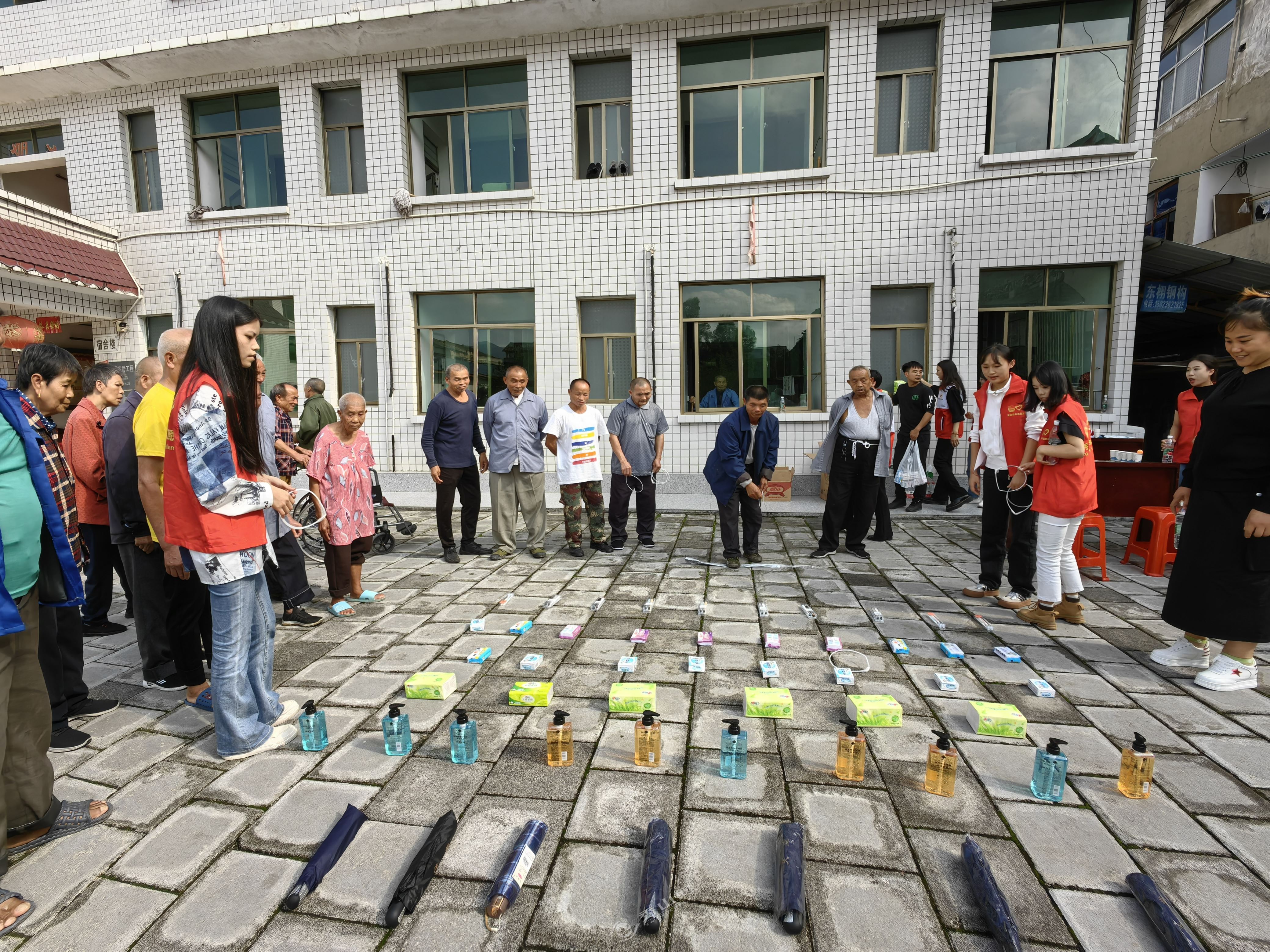 活動中,由縣紅十字會特邀的兩位老師為老人們帶去了健身操《八段錦》培訓,西部計劃志愿者陪伴老人們跟著老師邊學邊練,普及中醫養生知識,助力老人身心健康。同時,現場還開展了“喜迎國慶?情滿中秋”游園活動,“旱地釣魚”“蒙眼配色”和“套圈贏獎品”活動,并為老人送去月餅、牛奶等慰問物資,以實際行動為老人們辦實事,送溫情。