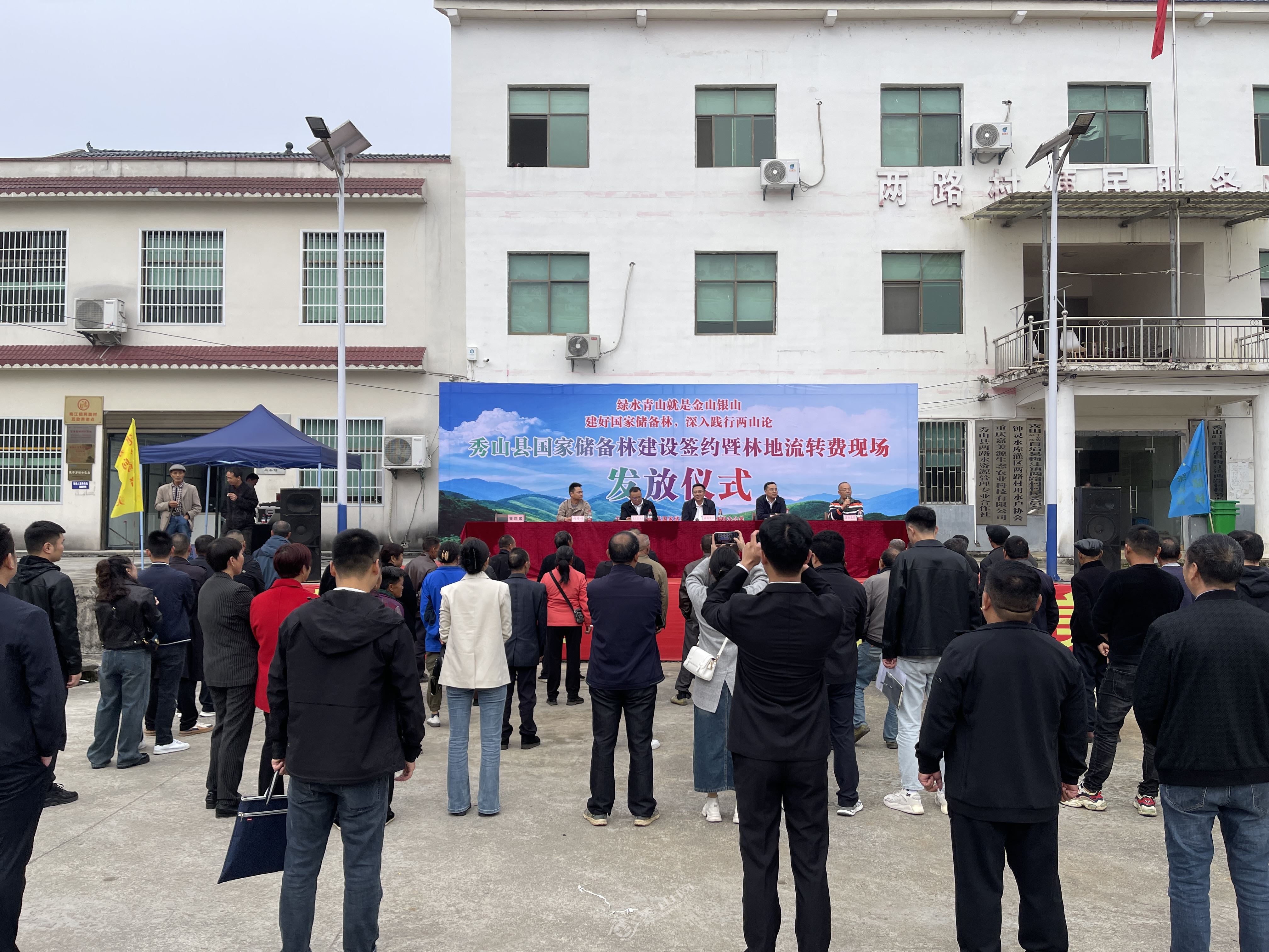 秀山網訊 10月30日上午,秀山縣平凱街道、梅江鎮與重慶市蠻寨林業(集團)股份有限公司就國家儲備林項目林地流轉進行集中簽約,并現場發放林地流轉費127萬元。這是秀山縣國家儲備林項目兌付的首批流轉費,標志著該項目建設進入“快車道”。