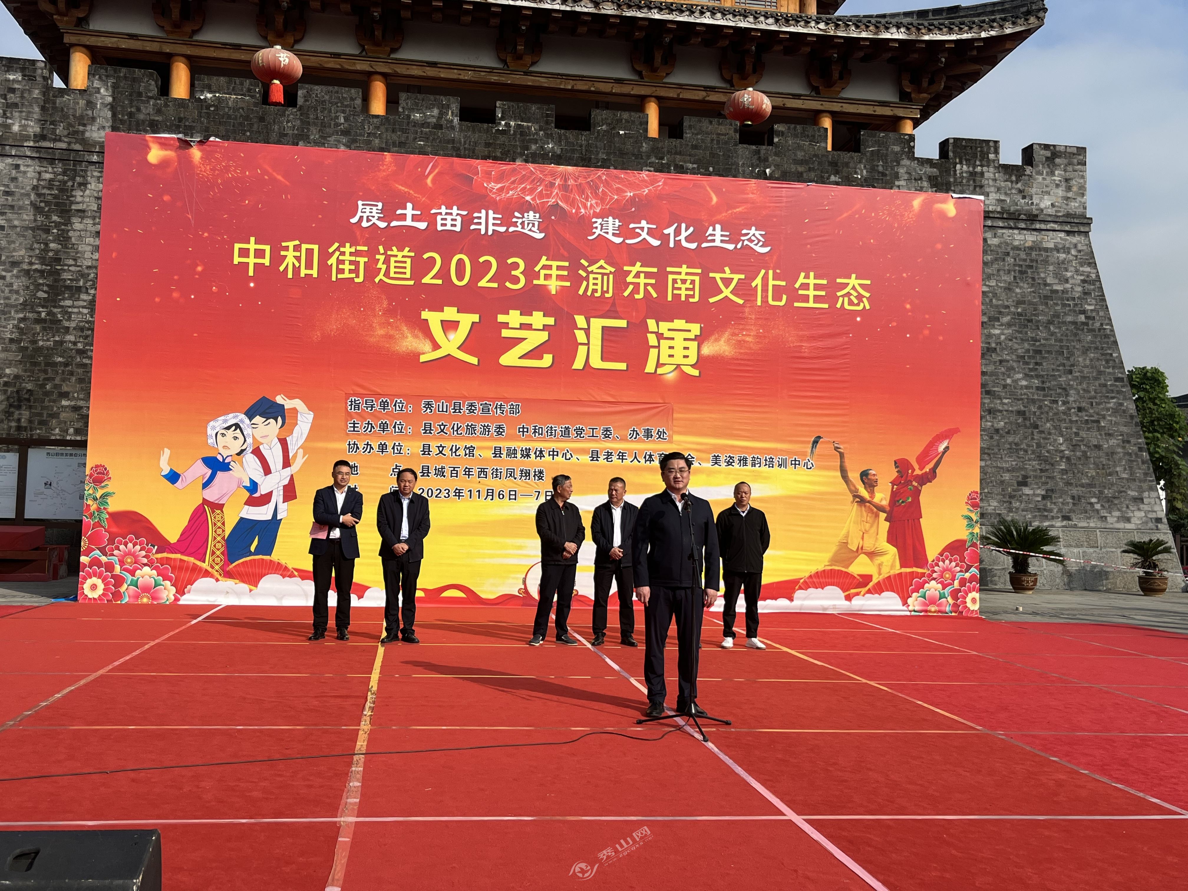 秀山網訊 為慶祝秀山自治縣成立40周年,展示新時代人民幸福美好生活,推動全民健身運動,進一步增強廣大市民的獲得感和幸福感。11月7日,以“展土苗非遺 建文化生態”為主題的中和街道2023年渝東南文化生態文藝匯演在西街游客中心舉行。縣委常委、宣傳部部長高利出席活動。