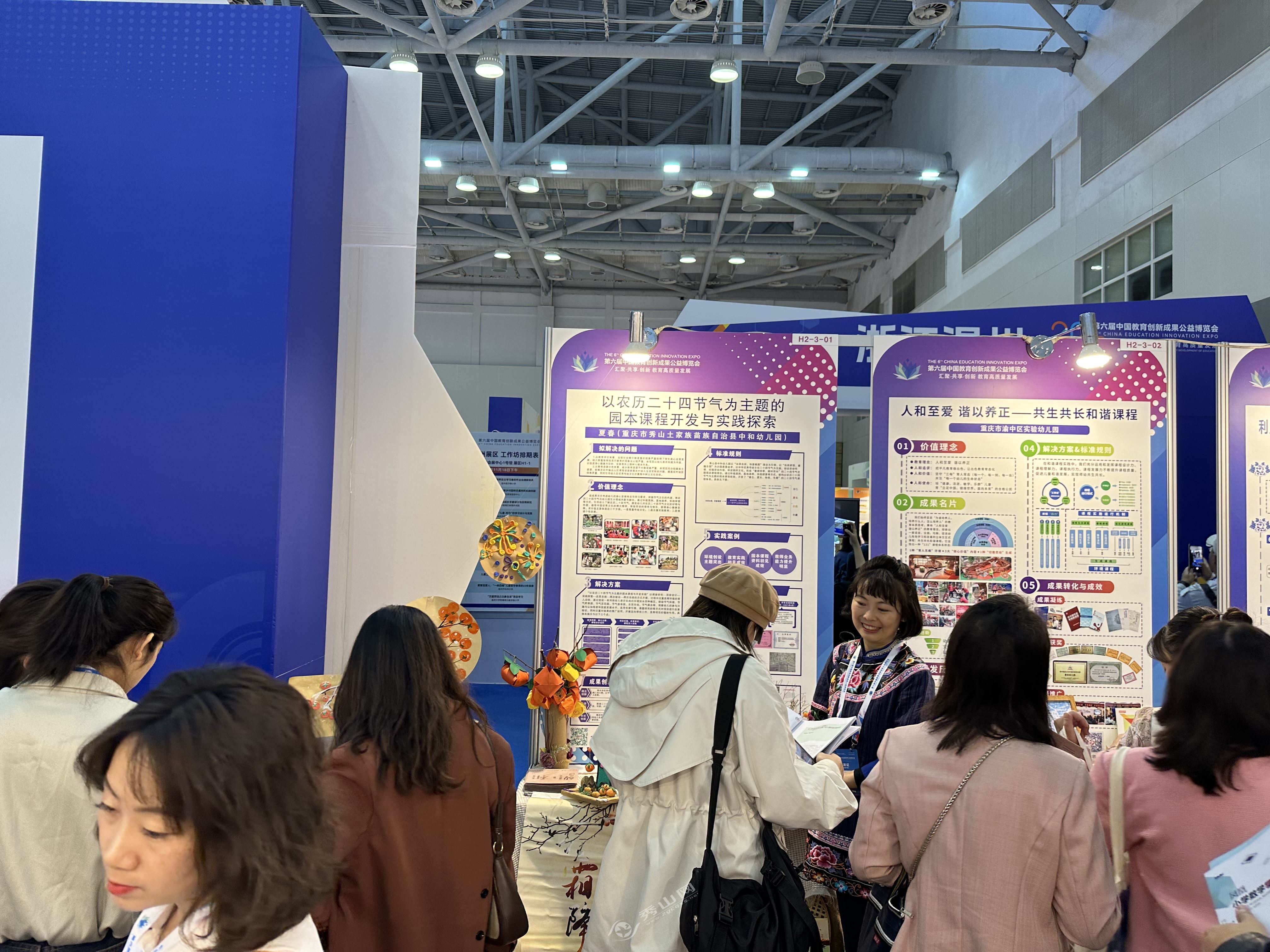 據了解,秀山縣中和幼兒園以“沐澤自然,詩意棲居”理念為引領,以“自然家園、童趣樂園”為辦園愿景追求,以中華優秀傳統文化二十四節氣為主線,創設活動環境、挖掘活動內容、積淀園所文化,形成了“童游四季,順時而長”的二十四節氣主題園本課程理念,通過環境浸潤、基地涵養、實踐探索等方式,建構以農歷二十四節氣為主題的園本課程框架,開發了“春生、夏長、秋收、冬藏”的二十四節氣課程體系。此次博覽會,共集中展示出2200余項國內外優秀教育創新成果,覆蓋教育優質均衡、教育治理現代化、新課程改革、新時代教師隊伍建設、教育數字化等領域,旨在深入貫徹落實黨的二十大精神,推進教育強國建設,實現教育科技人才融合發展,發揮教育對中國式現代化的支撐作用。