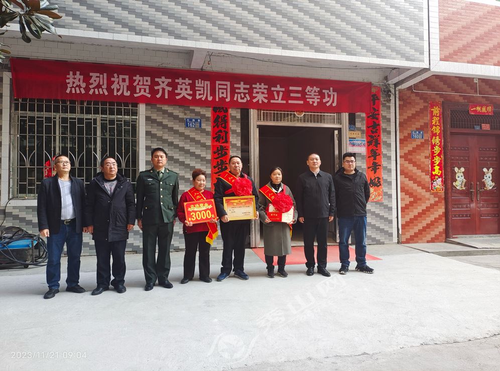 秀山網(wǎng)訊 11月21日,由縣退役軍人事務(wù)局、中和街道武裝部、中和街道退役軍人服務(wù)站組成的慰問組,前往榮立三等功的現(xiàn)役軍人齊英凱家中,為其家屬送去喜報。