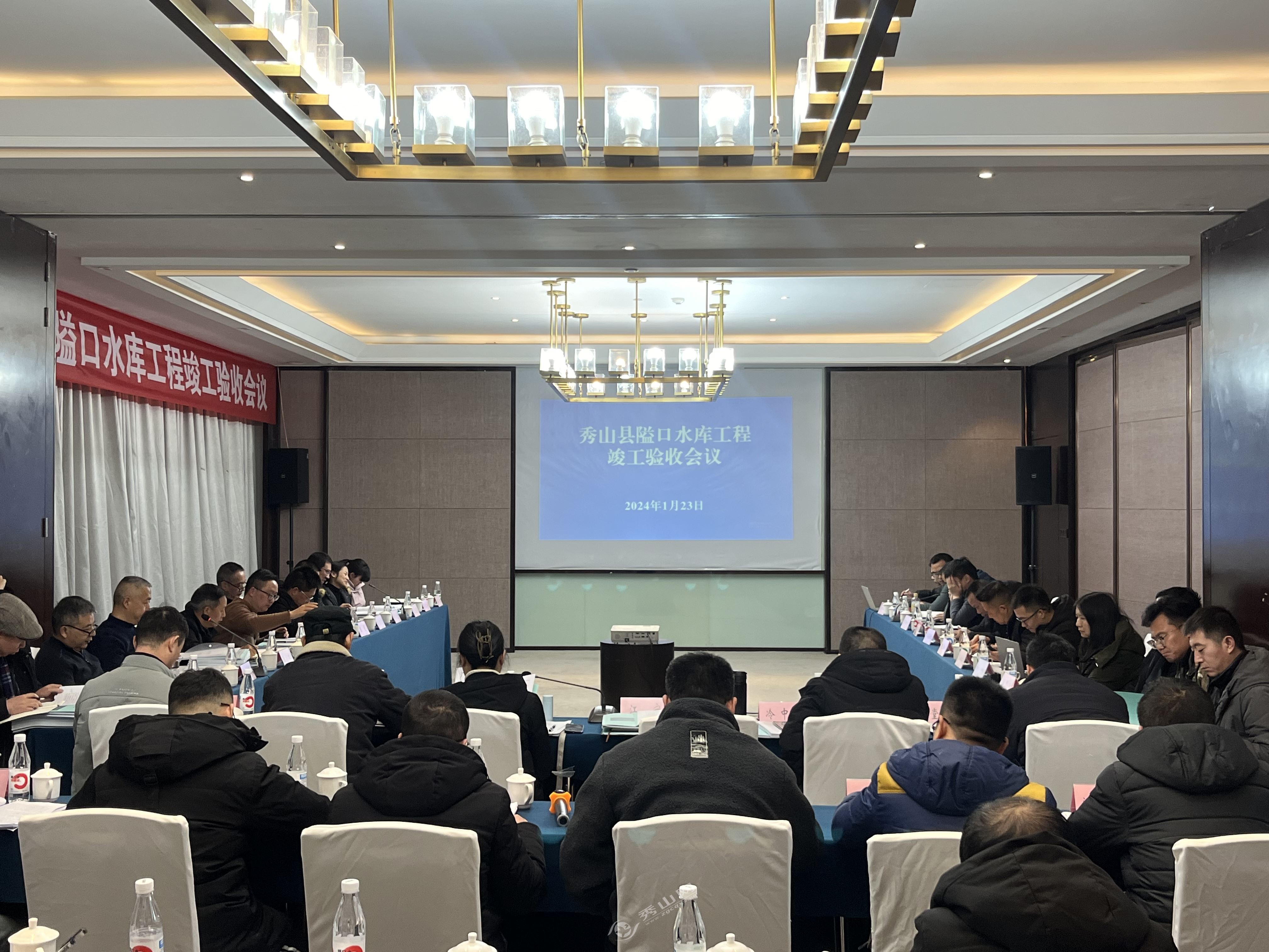 秀山網訊 1月23日,市水利局建設處處長張儉波帶隊來秀召開秀山縣隘口水庫工程竣工驗收會議。縣政府副縣長陳茂參加驗收會。