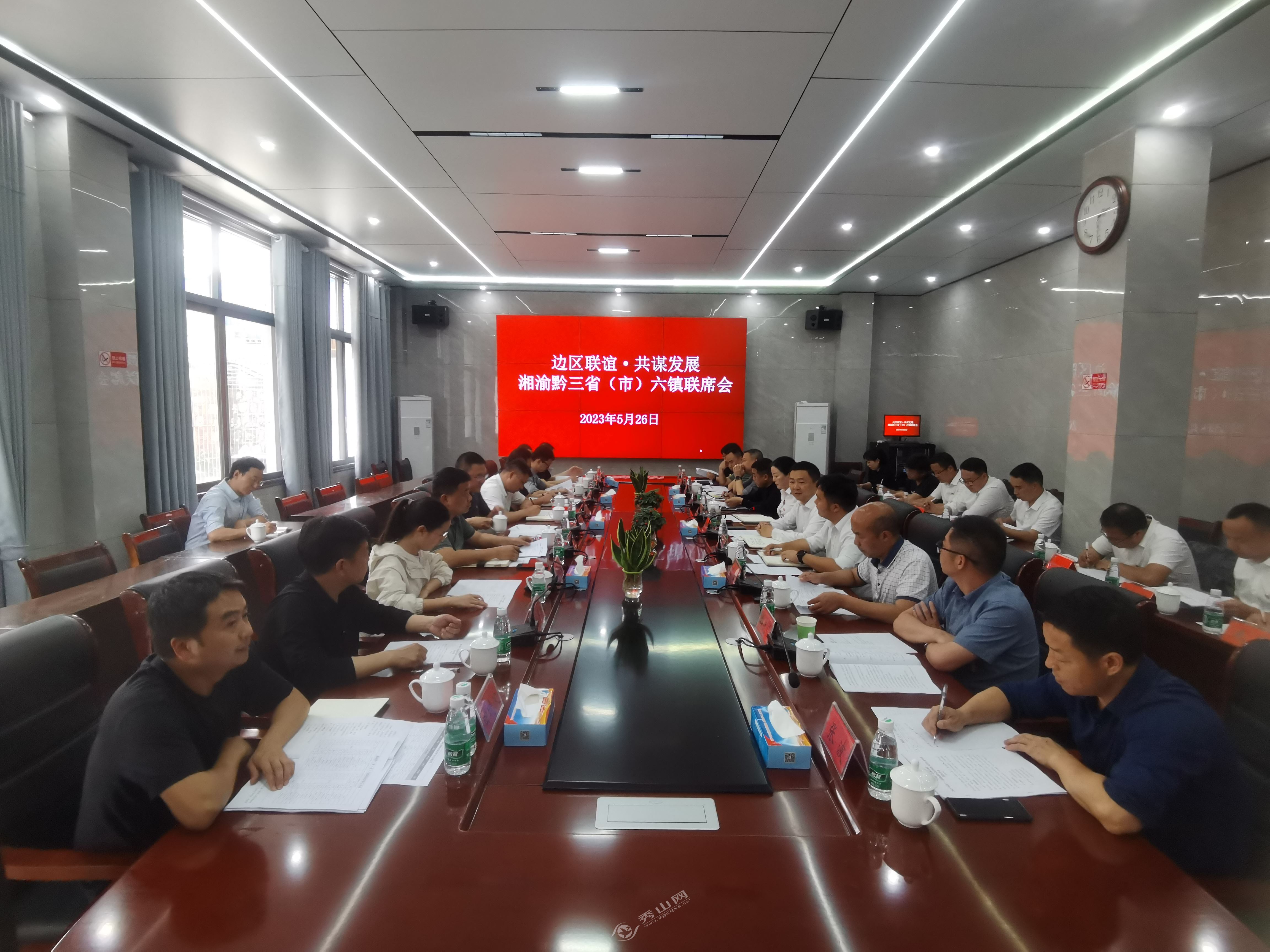 秀山網(wǎng)訊 5月26日,渝湘黔三?。ㄊ校┝?zhèn)聯(lián)席會召開,重慶秀山縣洪安鎮(zhèn)、雅江鎮(zhèn)、峨溶鎮(zhèn),湖南花垣縣邊城鎮(zhèn)、團(tuán)結(jié)鎮(zhèn),貴州松桃縣迓駕鎮(zhèn)三省(市)相鄰邊區(qū)的六個鄉(xiāng)鎮(zhèn)歡聚一堂暢敘兄弟情誼,攜手共謀發(fā)展。