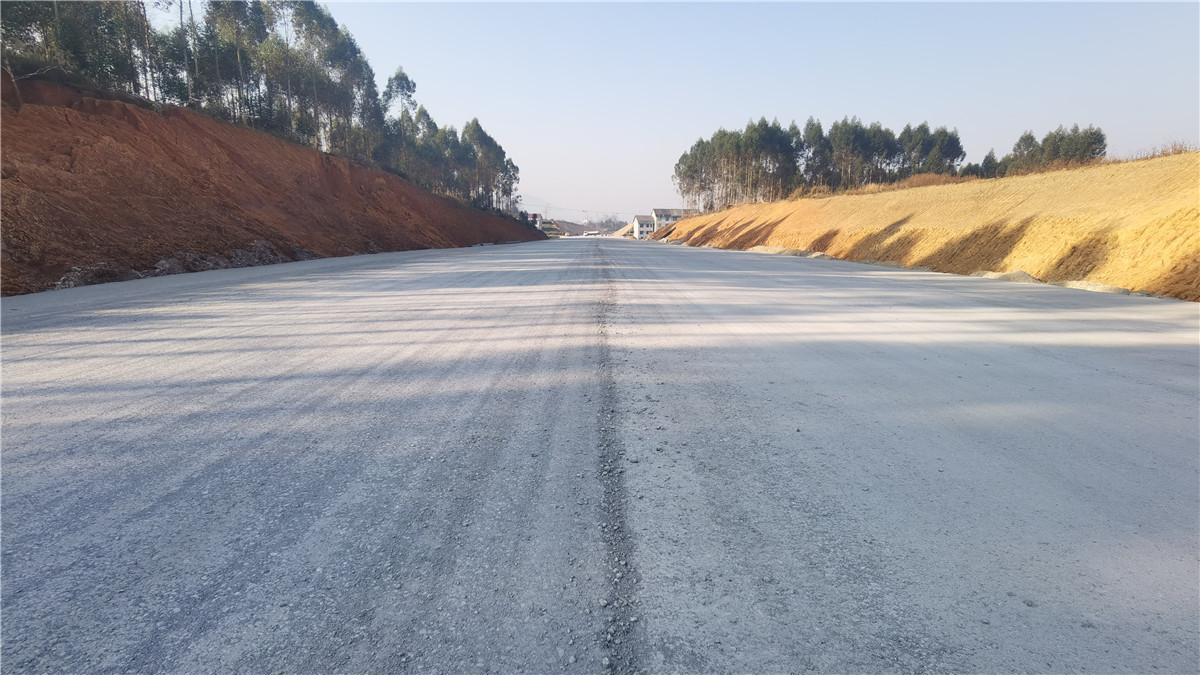 縣城至清溪快速通道A標段完成路基水穩層鋪設