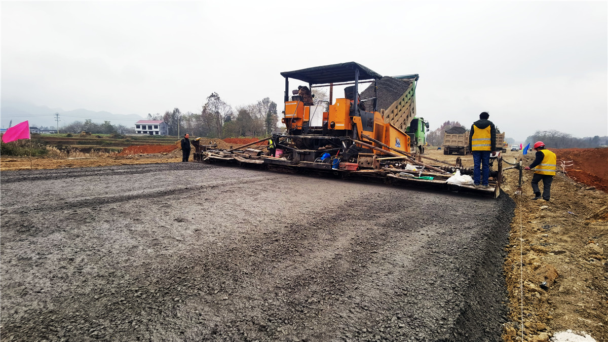 春節前初通 縣城至清溪快速通道開始鋪設水穩層